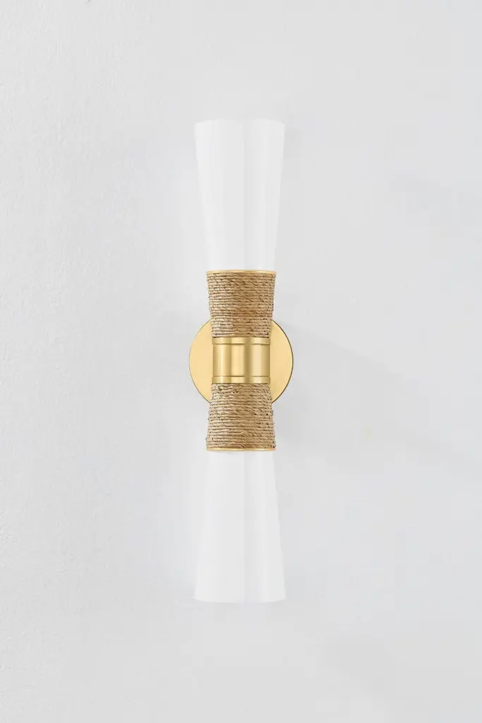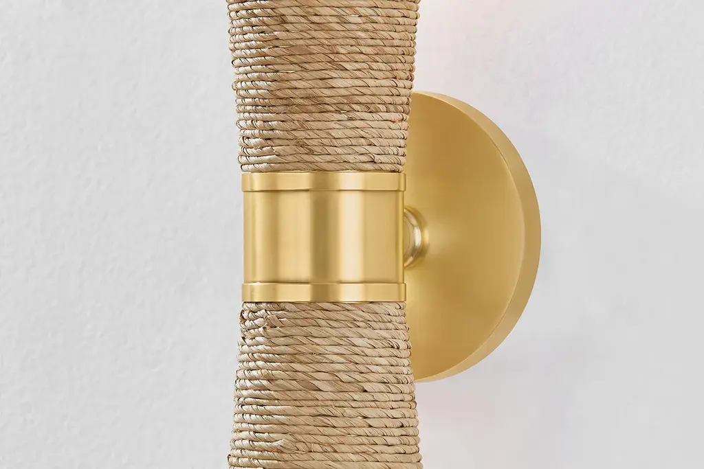 Balancing coastal charm with quiet luxury, Mica emits a gentle wash of light in kitchens and powder rooms. Its sleek silhouette is accented by wrapped raffia, an organic touch that makes this fixture feel approachable. Mica is available as a pendant in two sizes, or a wall sconce with one or two shades. Part of our Megan Molten x Mitzi Tastemakers collection.