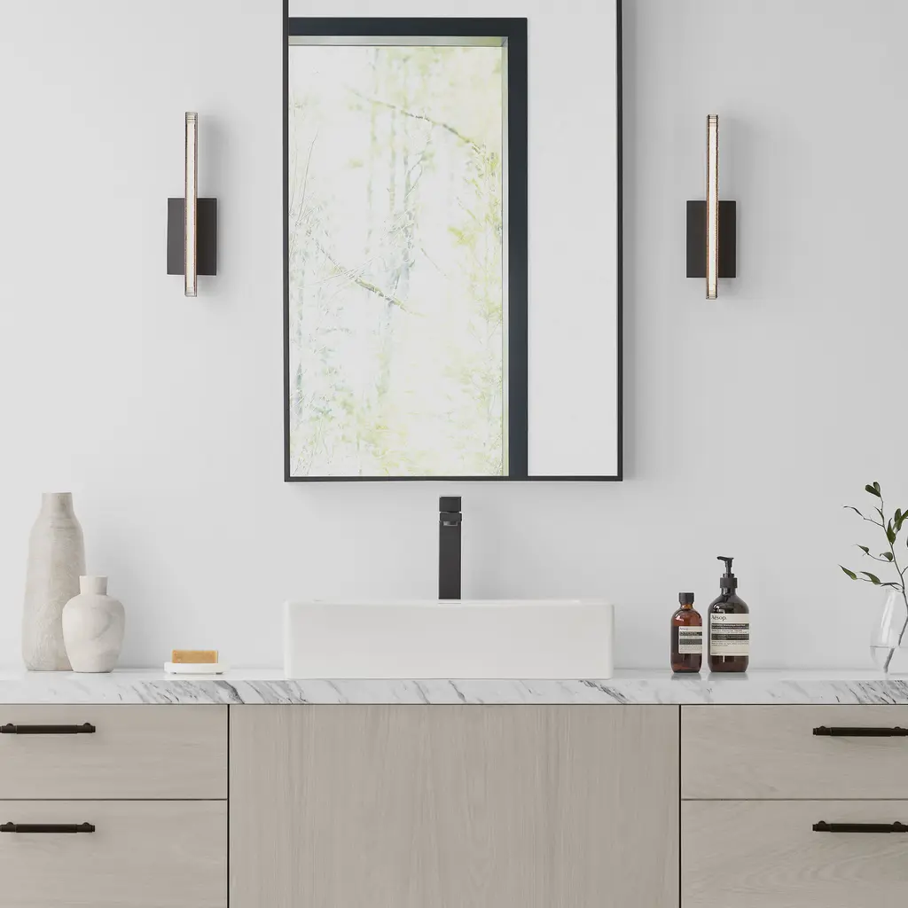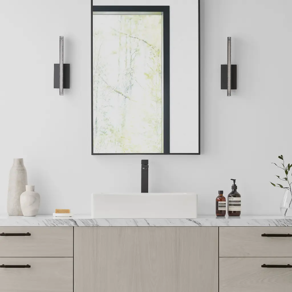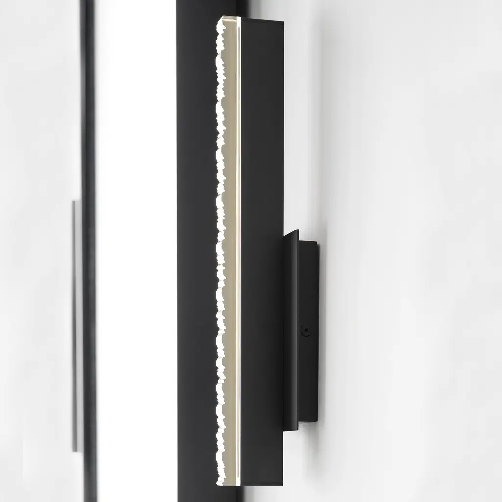 The Serre Small Sconce by Mick De Giulio for Visual Comfort Modern Collection features illuminated raw cut glass cased by thin metal edging, creating a subtle texture and weightless appearance. Given De Giulio's prominence in kitchen design, this minimal, elegant series draws inspiration from a serrated knife. Serre wall fixtures are ideal for bathroom vanity applications. Includes 10 watt, 720 delivered lumens, 2700K LED module. Dimmable with most LED compatible ELV, TRIAC and 0-10V dimmers. Mounts vertically only. Up or downlight. 120V-277V.