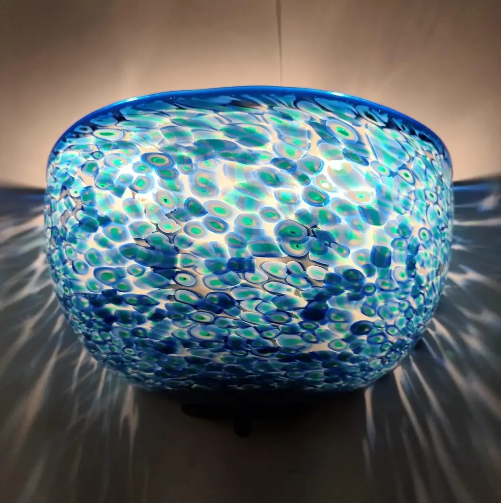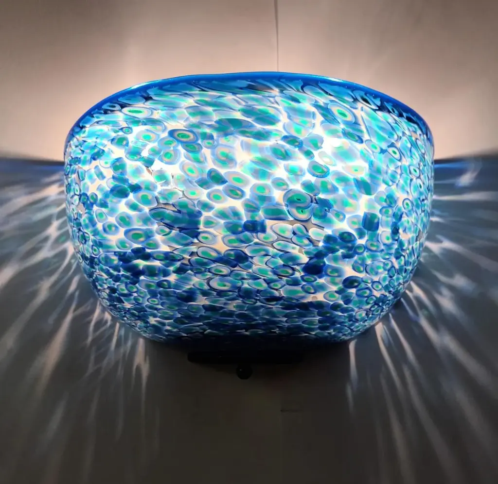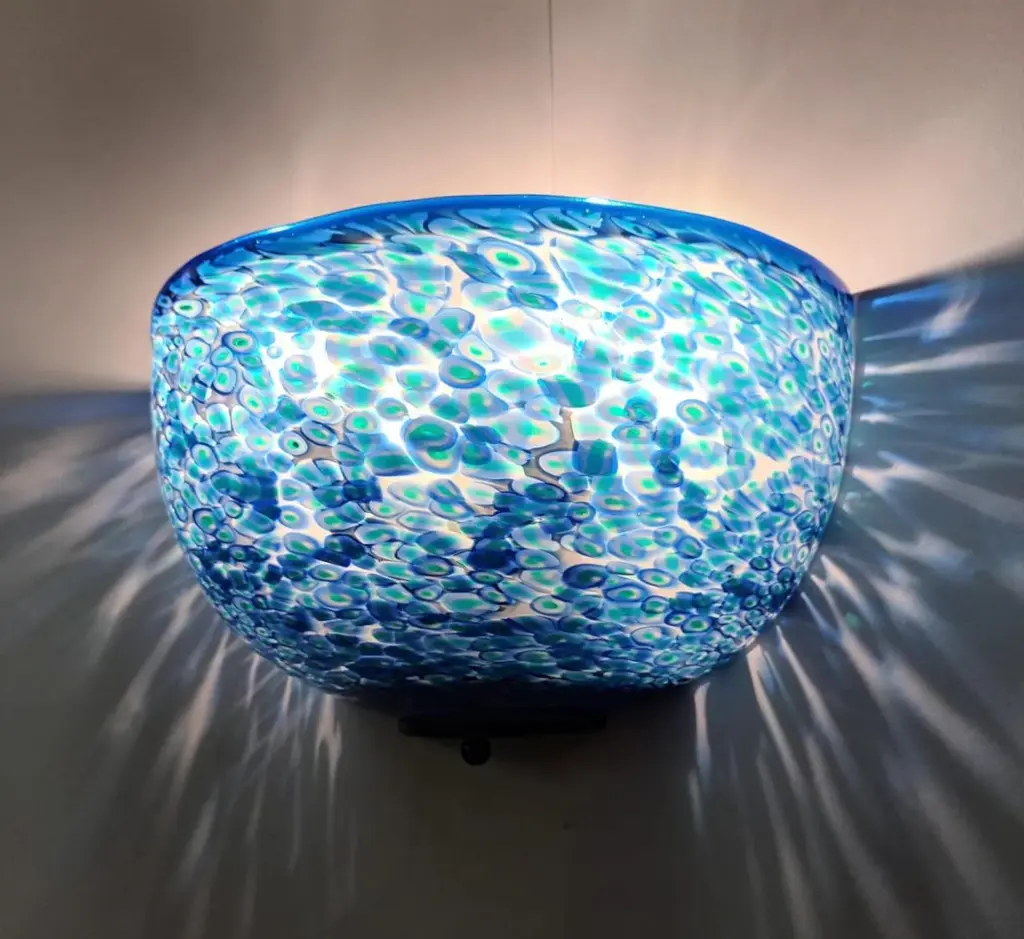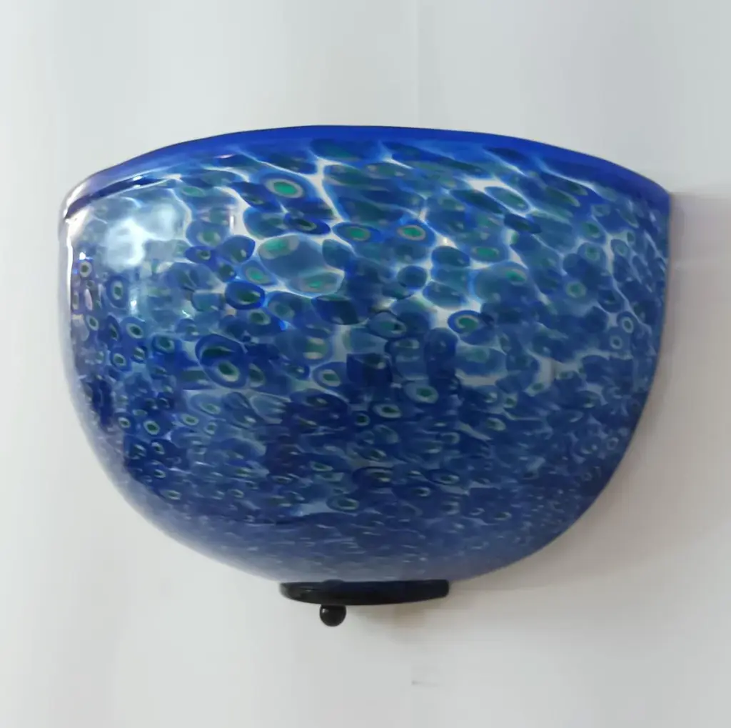 Italian wall lights with blue Murano glasses and melted murrine, designed by Gae Aulenti for Vistosi, made in Italy circa 1960s 2 lights / E26 or E27 type / max 60W each