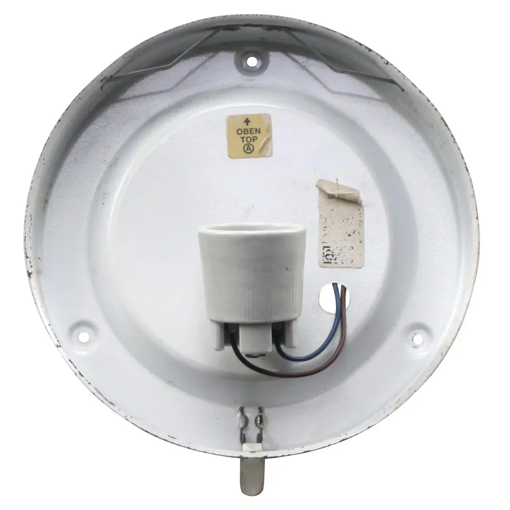 Mid-century wall or ceiling lamp.Metal base with white clear glass.1960-1970Weight: 1.40 kg / 3.1 lbPriced per individual item. All lamps have been made suitable by international standards for incandescent light bulbs, energy-efficient and LED bulbs. The new wiring is CE certified or UL listed. 100% safe. They can be set in operation immediately. Contact us for shipping prices for larger quantities. Excluding light bulb.