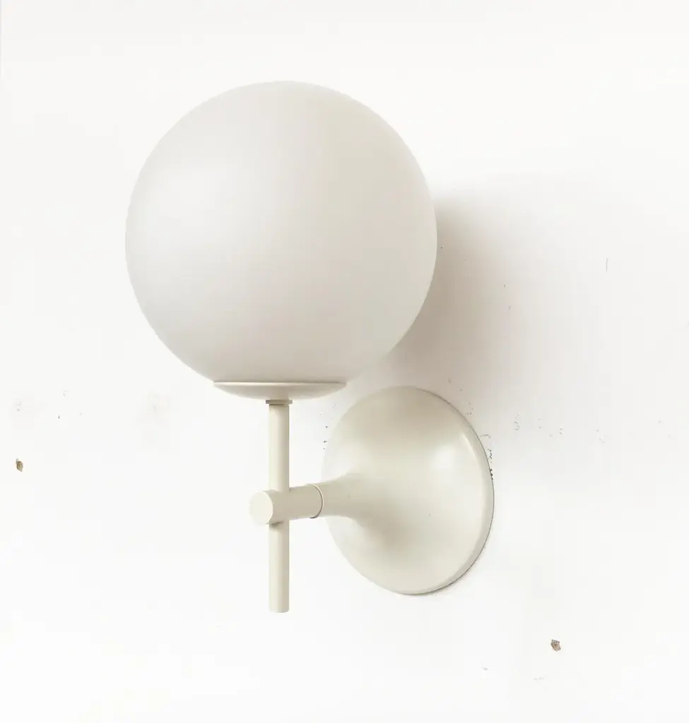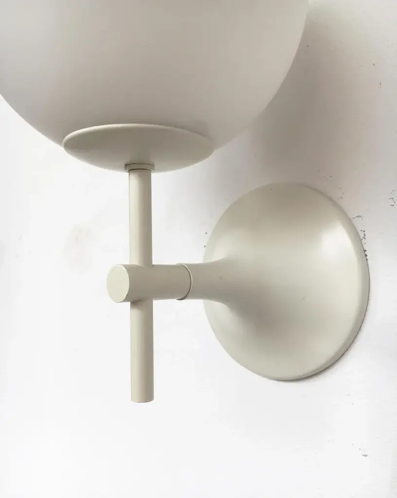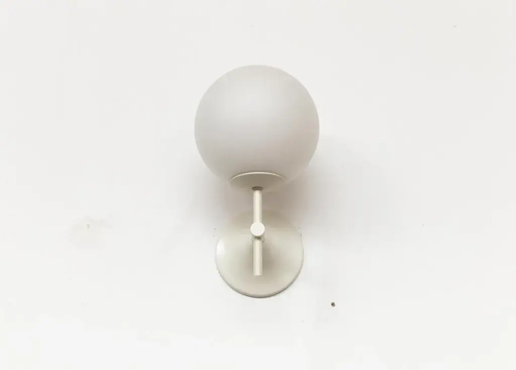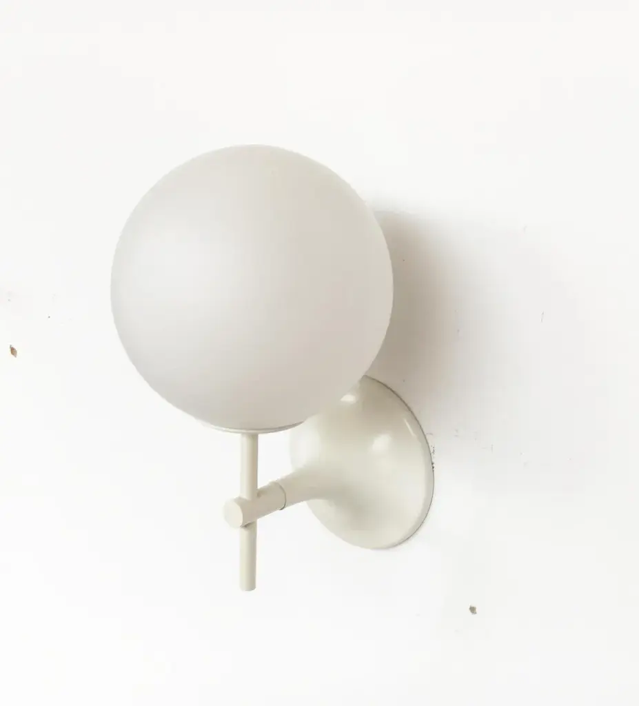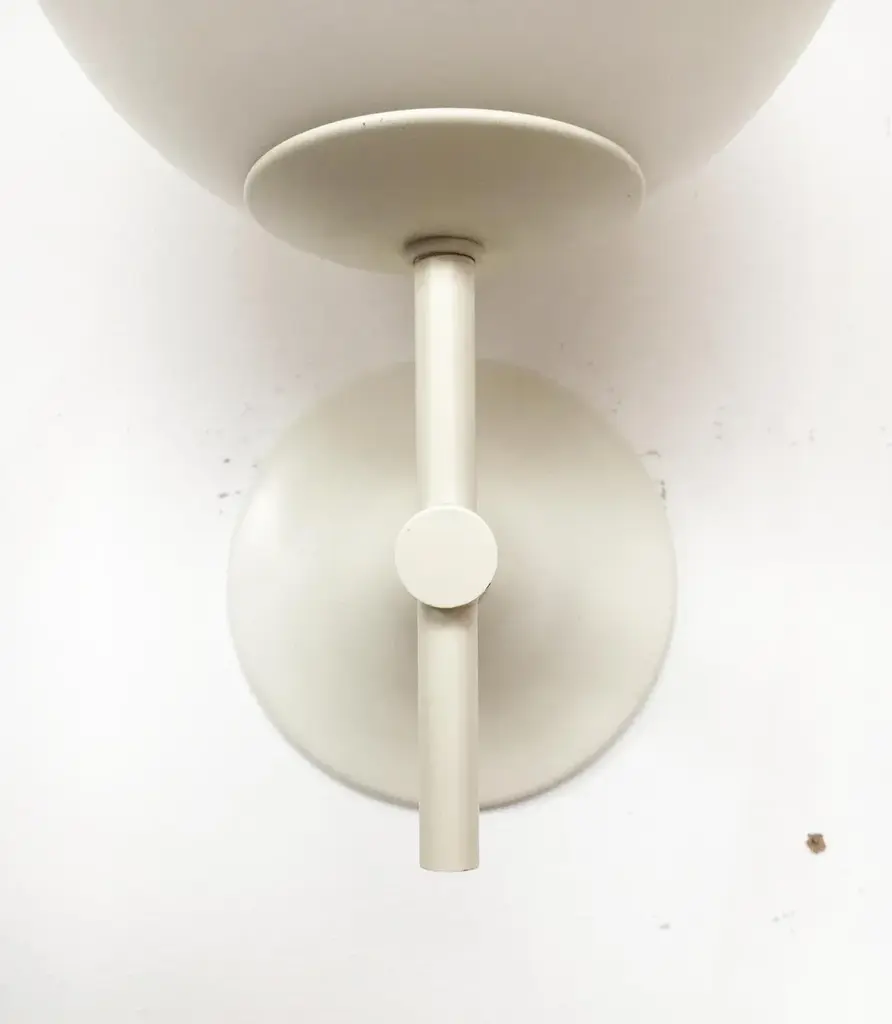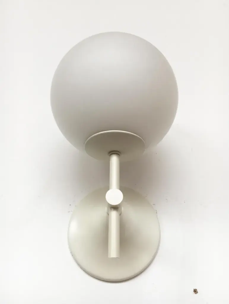 Elegant wall sconces from Temde based on a design by E.R. Nele. Often mistakenly attributed to Max Bill. Classic yet timelessly modern. The opal glass diffuser sits at the end of a straight bar, fixed centrally to a tulip-shaped plate. The globes screw onto the sockets with a thread. This piece has an attribution mark, I am sure that it is completely authentic and take full responsibility for any authenticity issues arising from misattribution, Up to 250V (Europe/UK Standard).The wiring of this item may be original and might need replacement, if not specified otherwise.