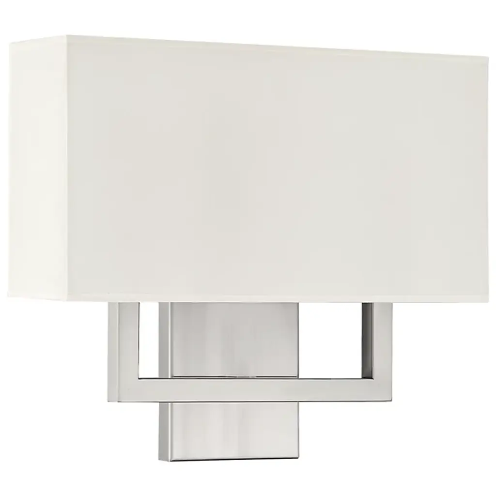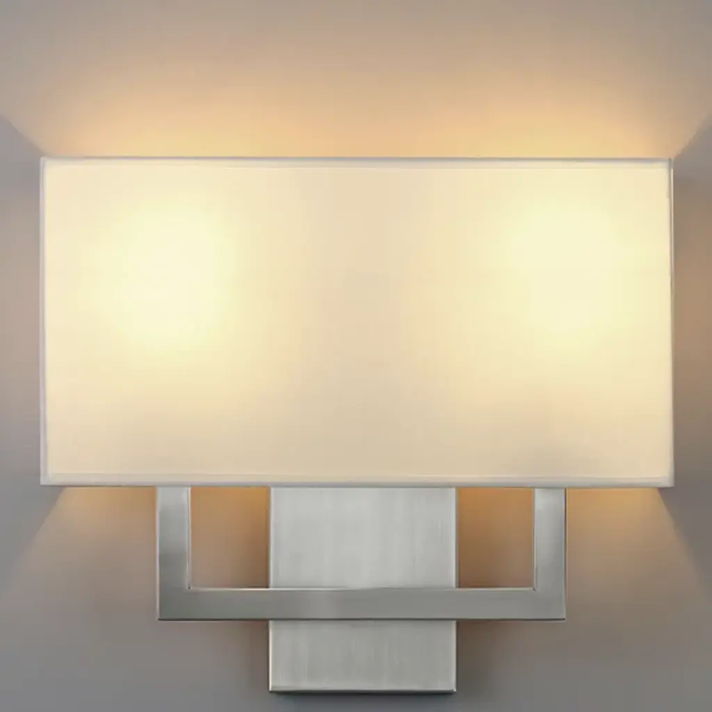 The Mid Town 2-Light Wall Sconce by Access Lighting offers home decorators a transitional feel that's at home in a variety of different interiors and aesthetic inspirations. It's crafted with a steel frame that features a square backplate to match its dual arm design, all centered on a square hardback fabric shade for a big presence. Add its energy efficient light and you have a contemporary favorite for living rooms, bedrooms, and much more.