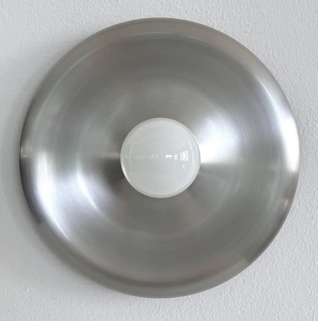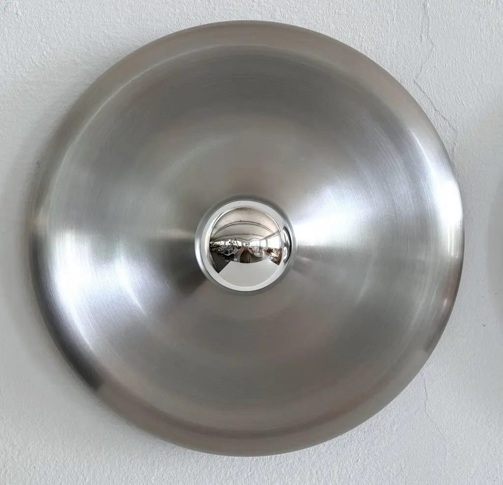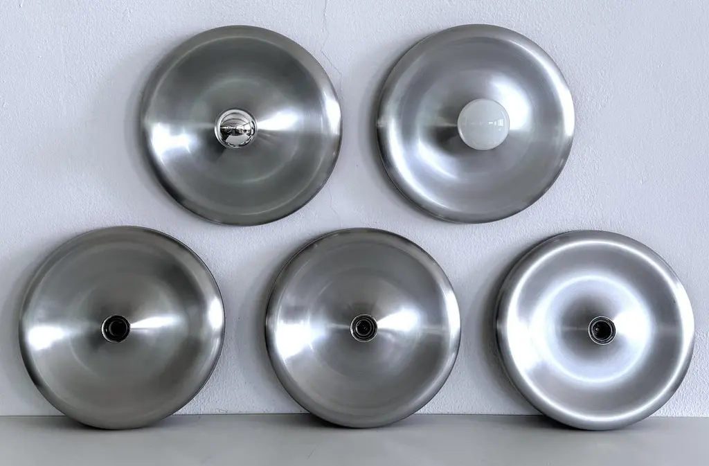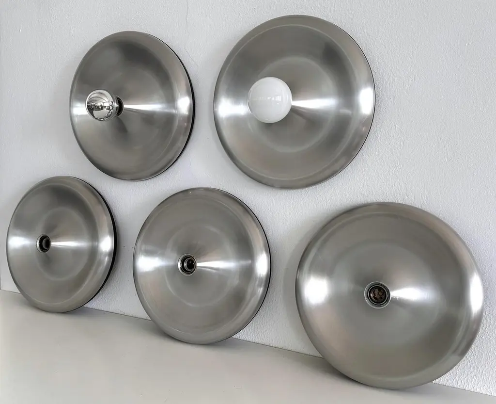 Midcentury Round Silver Aluminium Disc Wall Lights Or Flush Mount, 1970s