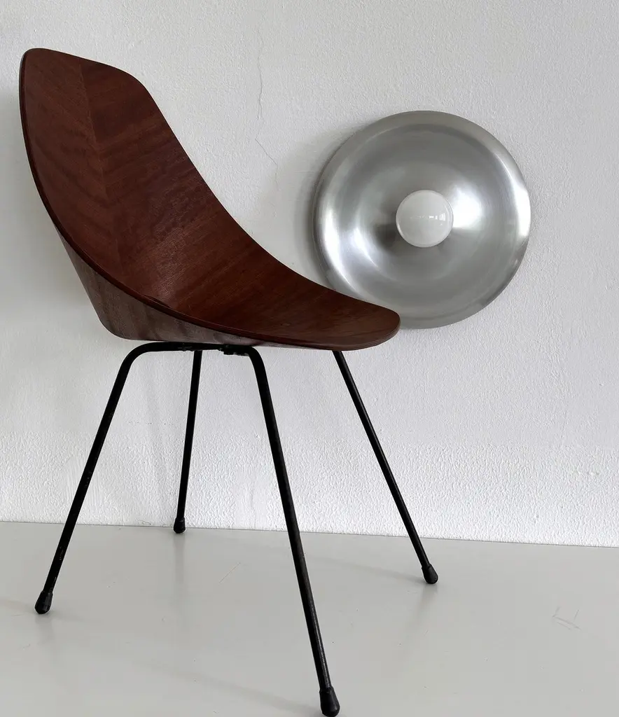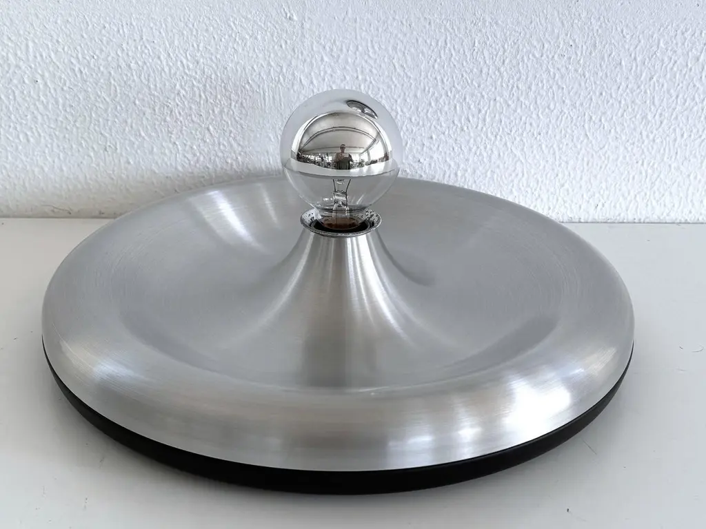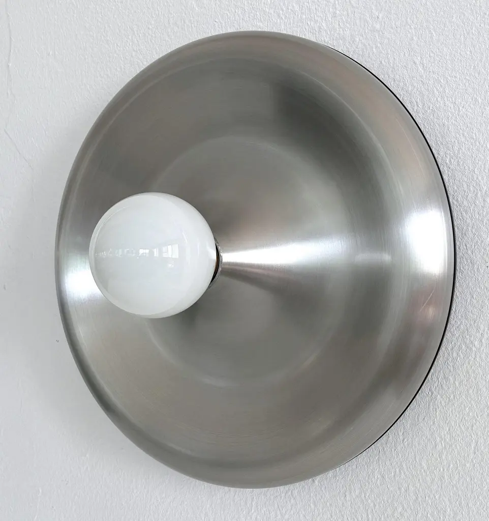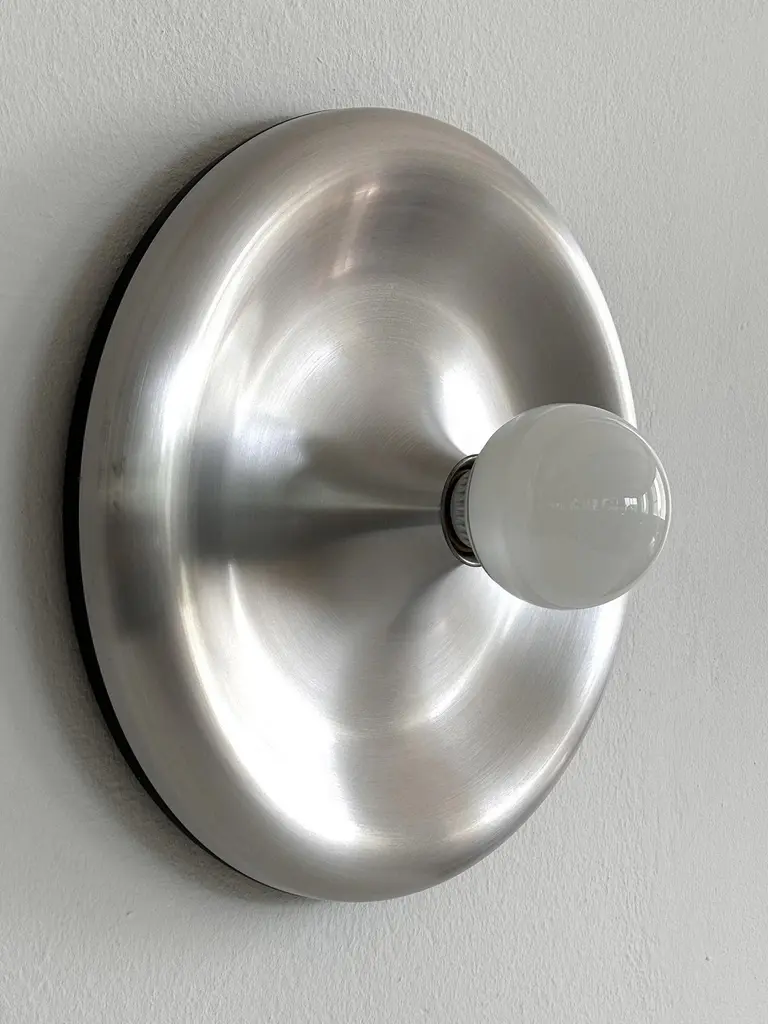 Midcentury Round Silver Aluminium Disc Wall Lights Or Flush Mount, 1970s