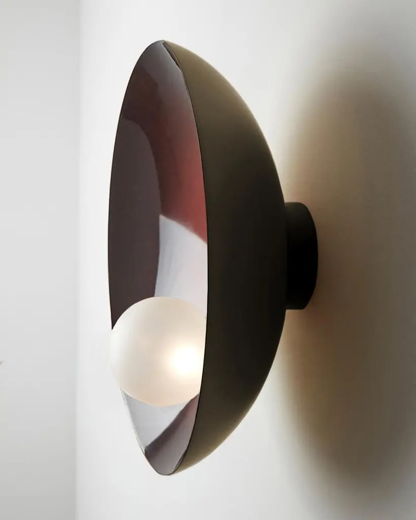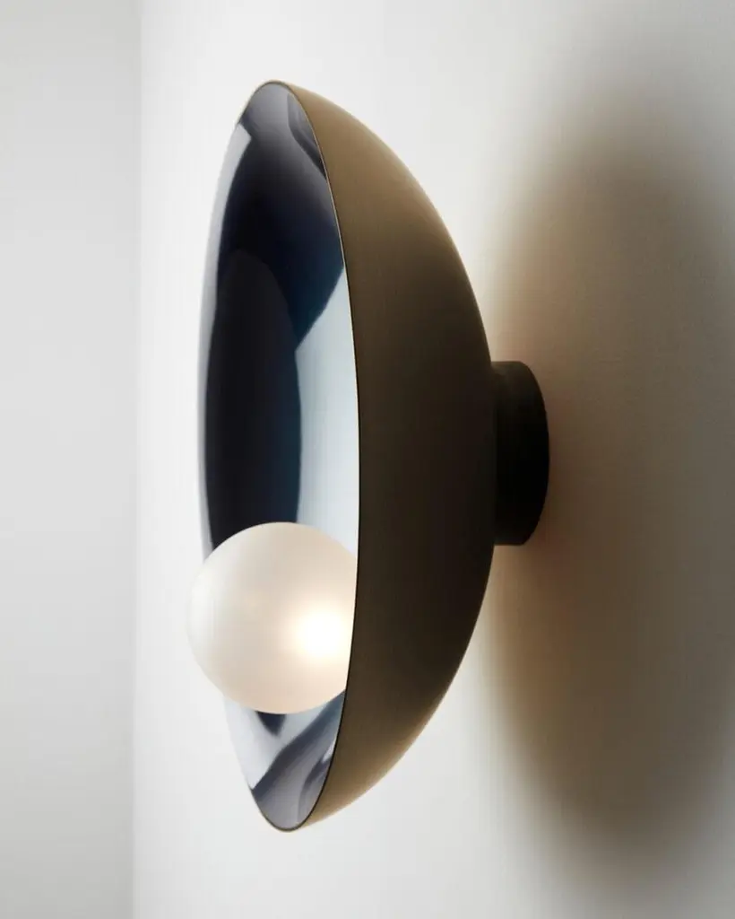 Midnight Blue and Brushed Bronze Ceiling & Wall Mounted Lamp Oyster by Carla BazDimensions: D 15 x W 40 x H 40 cm.Materials: Brushed bronze.Weight: 3,5 kg.Available in verdigris metal, brushed brass, copper or bronze finishes. Available in different color/ finish options. Please contact us.Oyster is a series of sculptural lighting pieces that were developed in 2016. Wanting to explore the idea of customization and adapting designs to different functionalities and scales, we developed this new series available in 3 different sizes and a selection of bold colors offering choices that are eccentric and personal.All our lamps can be wired according to each country. If sold to the USA it will be wired for the USA for instance. Carla Baz is a French-Lebanese designer dedicated to foster synergies between her innovative approach to furniture/lighting and the very accomplished skills of Lebanese artisans. After studying interior architecture at ESAG Penninghen in Paris, she pursued a Masters in product design for the luxury industry at the University of Art and Design Lausanne (ECAL) where she had the opportunity to work on several projects under the supervision of international designers such as Ronan Bouroullec, BarberOsgerby, Marti Guixé, Pierre Charpin and Umberto and Fernando Campana. She then engaged in diverse professional experiences, working in London for Burberry, Vivienne Westwood and Zaha Hadid until she felt it was time to explore her own lines. Thus began a very inspiring sequence of experiments which resulted in small editions of her sculptural and functional furniture and earned her the Brussels based Boghossian Fondation’s 2013 Design Prize. All her projects are rooted in that elaborate relationship where innovative ideas meet noble materials that are worked by hand. Within that journey to their process, unique and elegant products are born that hold their place in our landscape. Carla has recently been awarded the 'Rising Talent' award at Maison & Objet’s 2018 September edition.