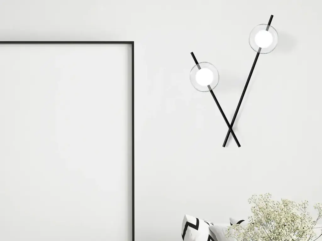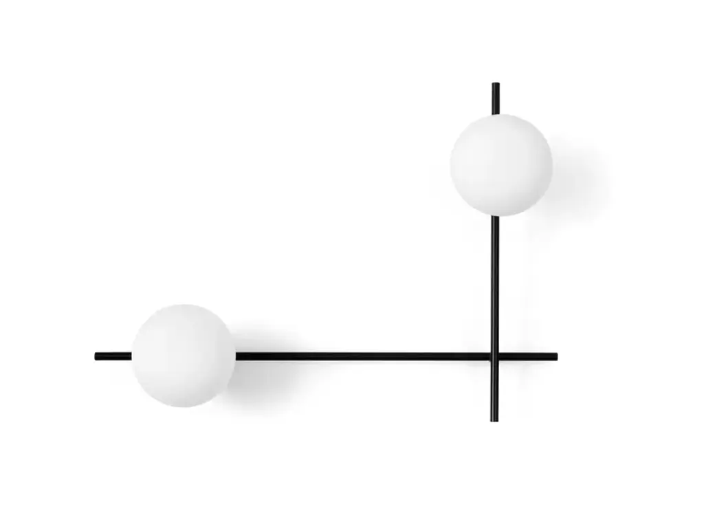 Mikado is a two-light wall lamp with black soft touch powder coated metal frame and milky white blown glass or transparent glass diffuser. The rotation of the secondary arm allows you to choose the preferred position.Technical information:- Light source: G9- Power: 2 x max 28wCompositional flexibility. MIKADO embodies the very essence of expressive and creative freedom: the ability to orient the rods at will allows the creation of orthogonal or dynamic geometries, exploring more rigid or more fluid solutions. The balance between the painted metal structure and the diffusers is completely disengaged from any formal constraints. This extreme autonomy is the reason why MIKADO was awarded the Good Design Award.
