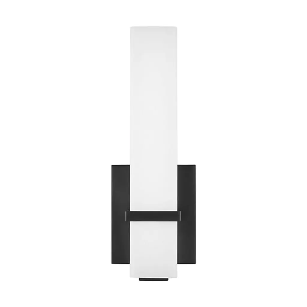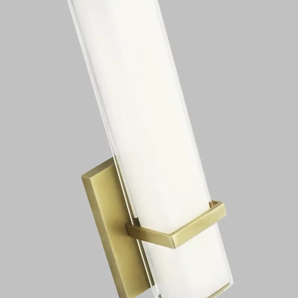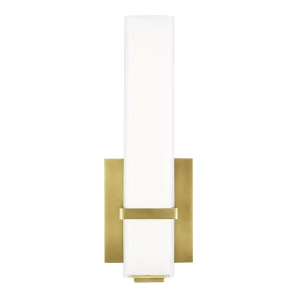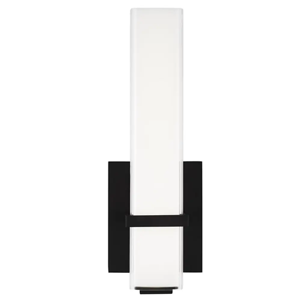 The Milan Acrylic LED Bath Wall Sconce by Visual Comfort Modern, formerly known as Tech Lighting, is a refined, modern addition to spaces with a crisp, clean design. A sleek backplate and structured metal band with a matching finish support a rectilinear design that pairs a crystalline inner acrylic shade with an outer glass shade. The inner shade adds a dynamic, dimensional touch to the energy-efficient light that is evenly diffused throughout this design, lending a bright, practical touch to its surroundings.