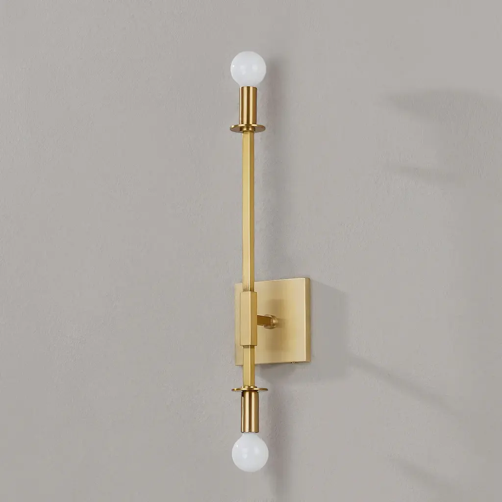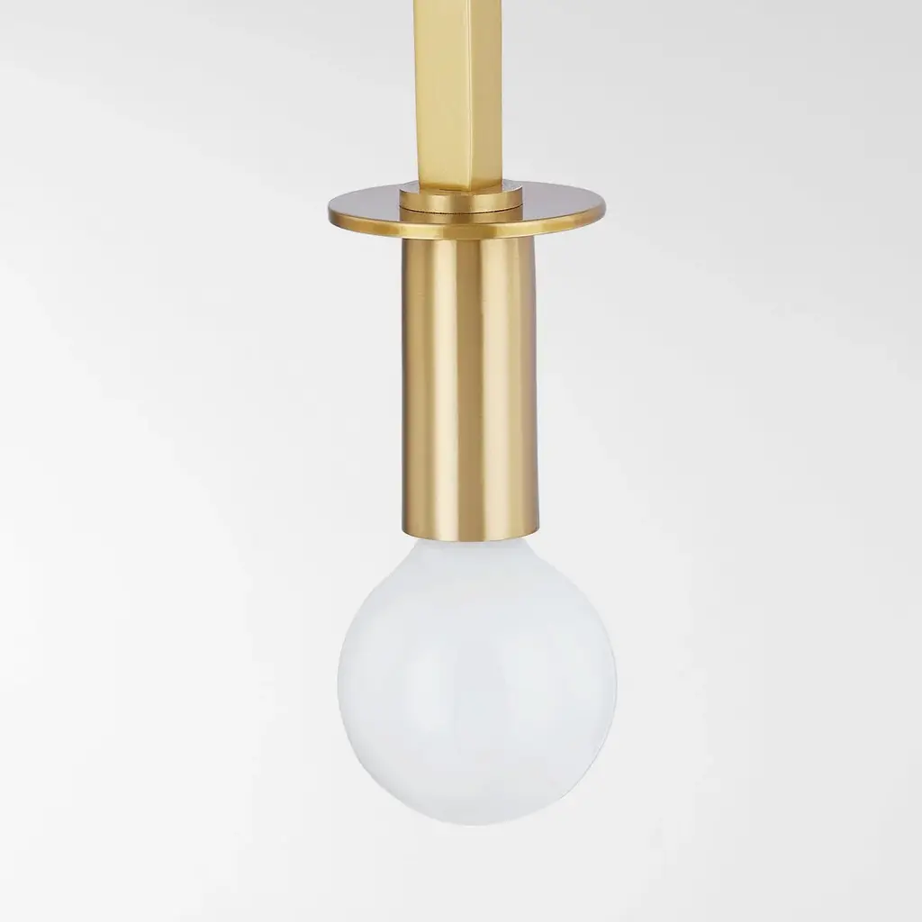 Milana takes proportion play to the next level, delivering a statement-making wall sconce with brilliant form. A square backplate and center arm are strong modern features, offsetting the rounded curves in the sockets and bulbs. Finished in aged brass, polished nickel, and old bronze.