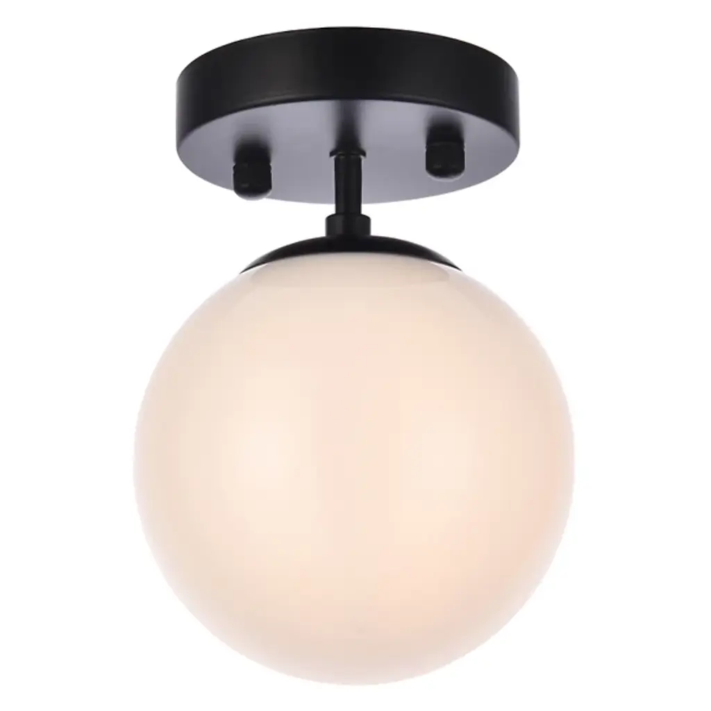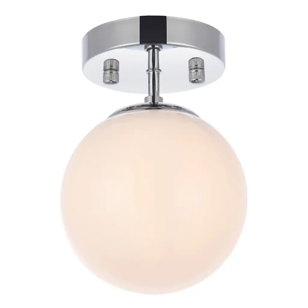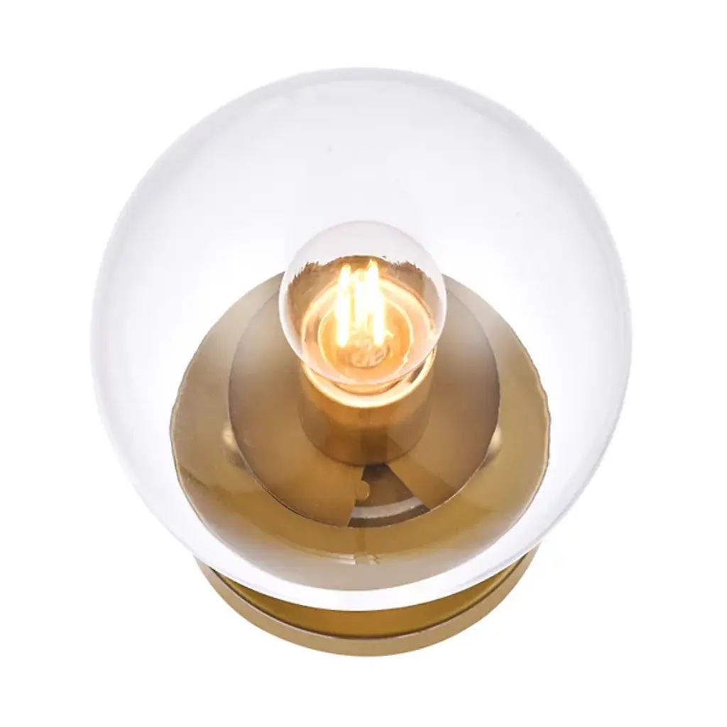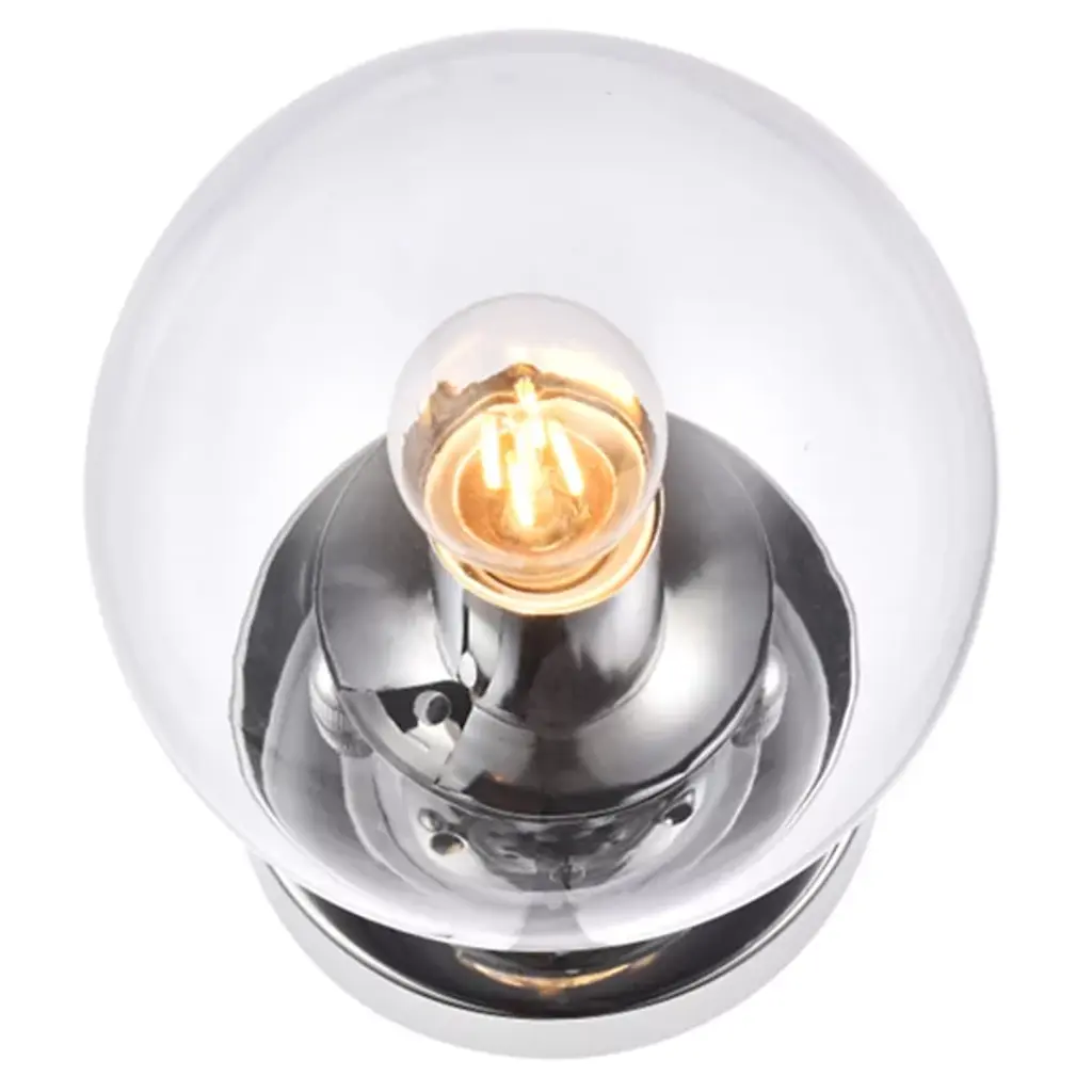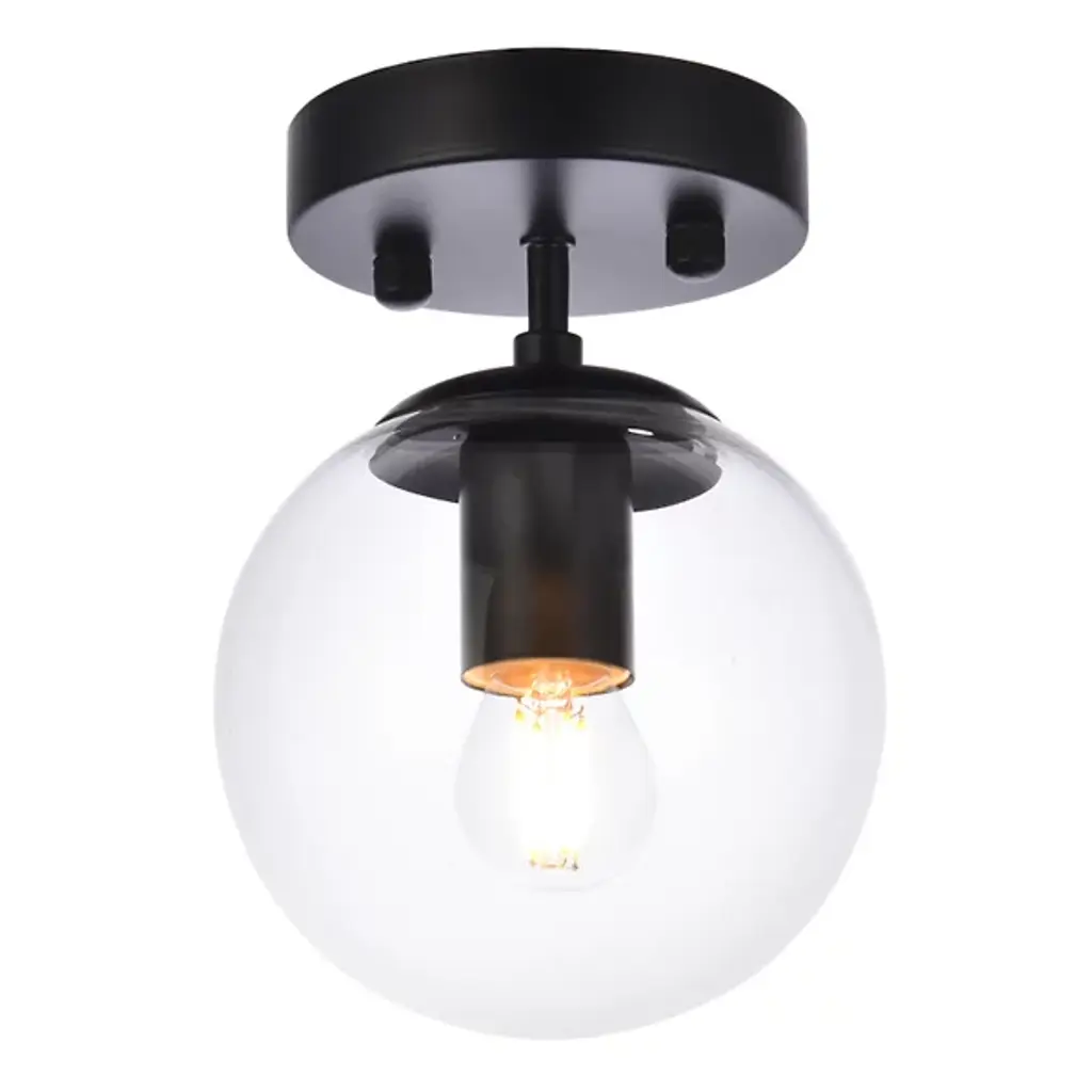 Introducing the Milio Flushmount/Wall Sconce from Huxe, a memorable modern lighting fixture designed to elevate your indoor ambiance. The fixture features a clear glass sphere shade, exuding a contemporary aesthetic. Supported by a disc wall mount and a short, slender stem leading to the lamping, this sconce offers a layered illumination effect that adds depth to your space. Crafted from durable metal with a glass sphere shade, this fixture seamlessly blends elements of Mid-Century Modern style, enhancing the overall aesthetic of your bathroom with its timeless charm and functionality.