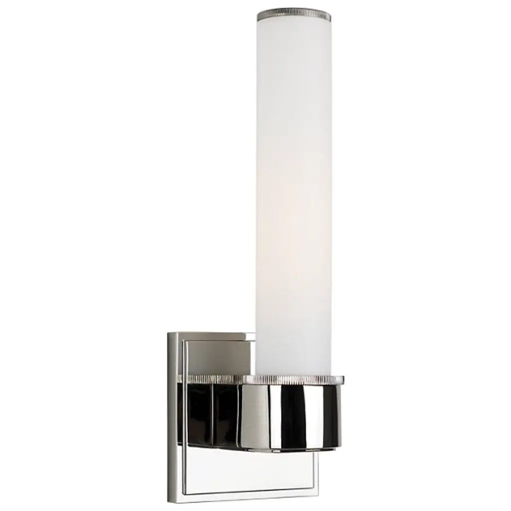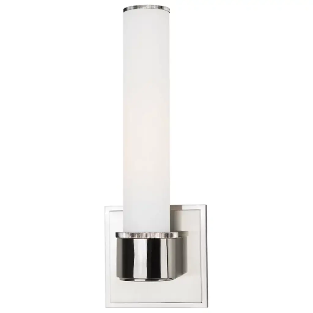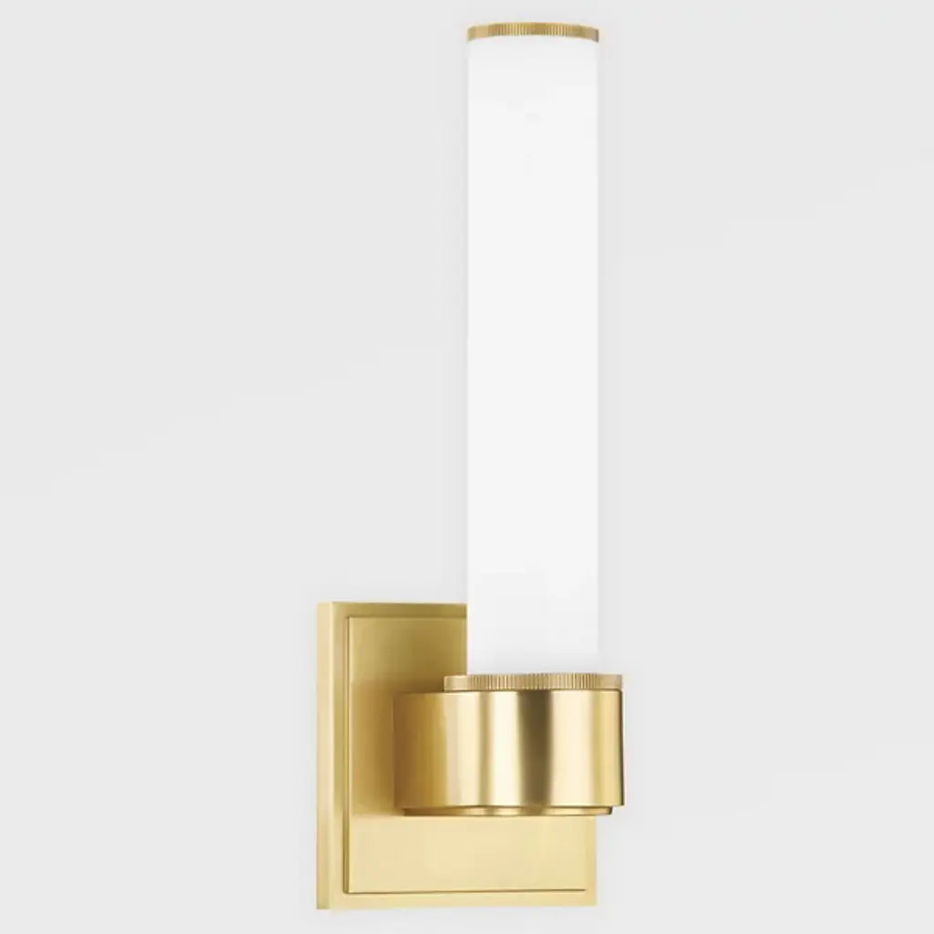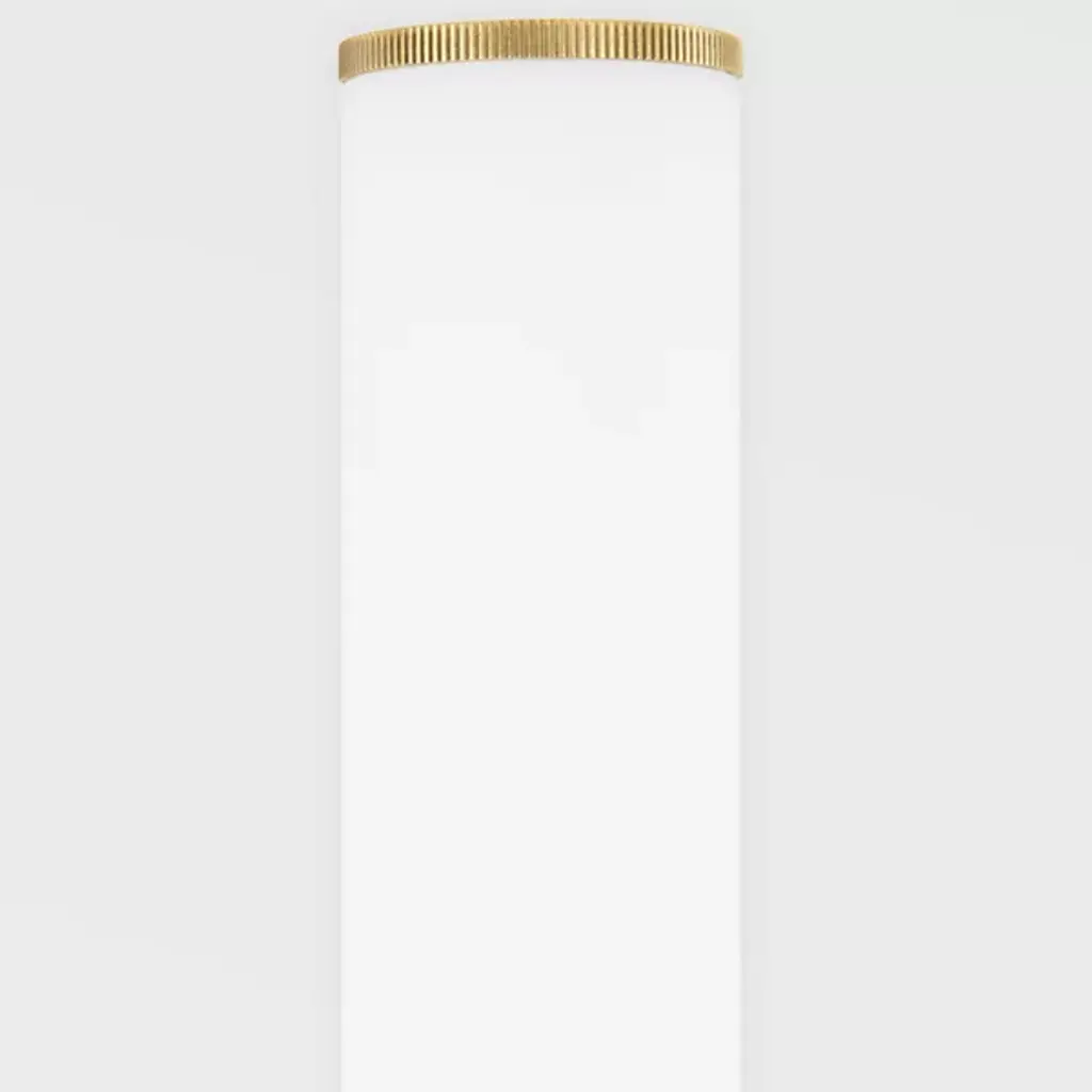 The Hudson Valley Mill Valley Wall Sconce is a beaming pillar of light. Its opal glass shade provides evenly diffused illumination while cutting down on harsh glare. Solid brass supports provide an attractive balance to the rounded glass with its straight edges and defined lines. A unique soft contemporary option for the dining room or entryway.