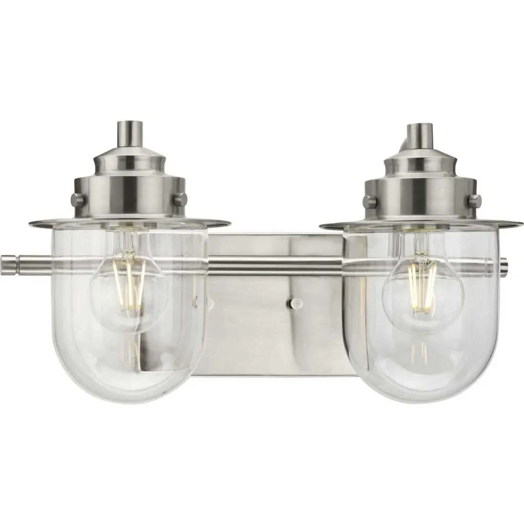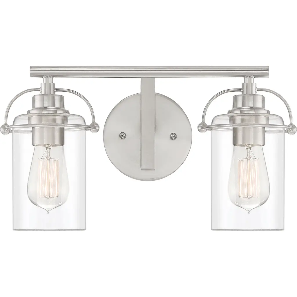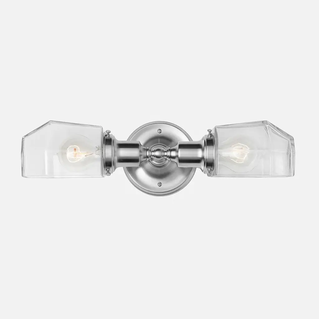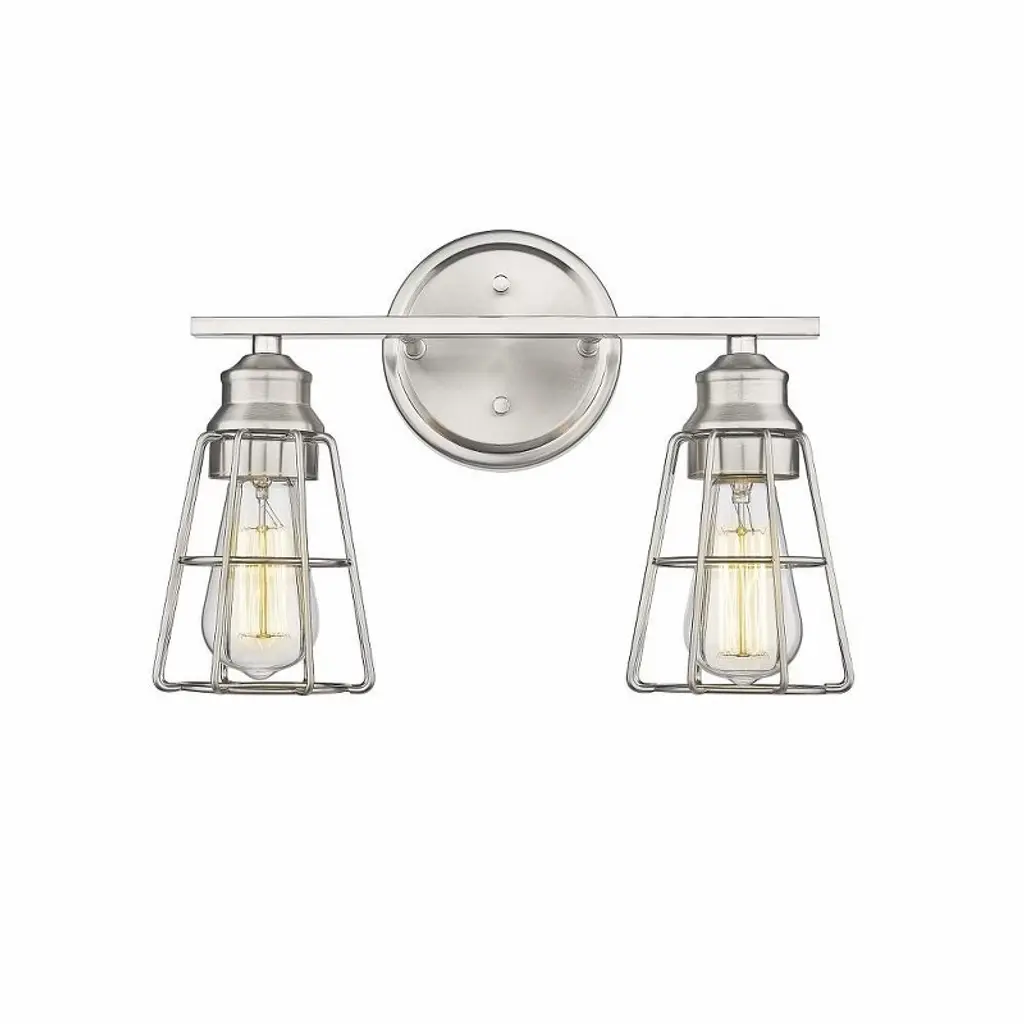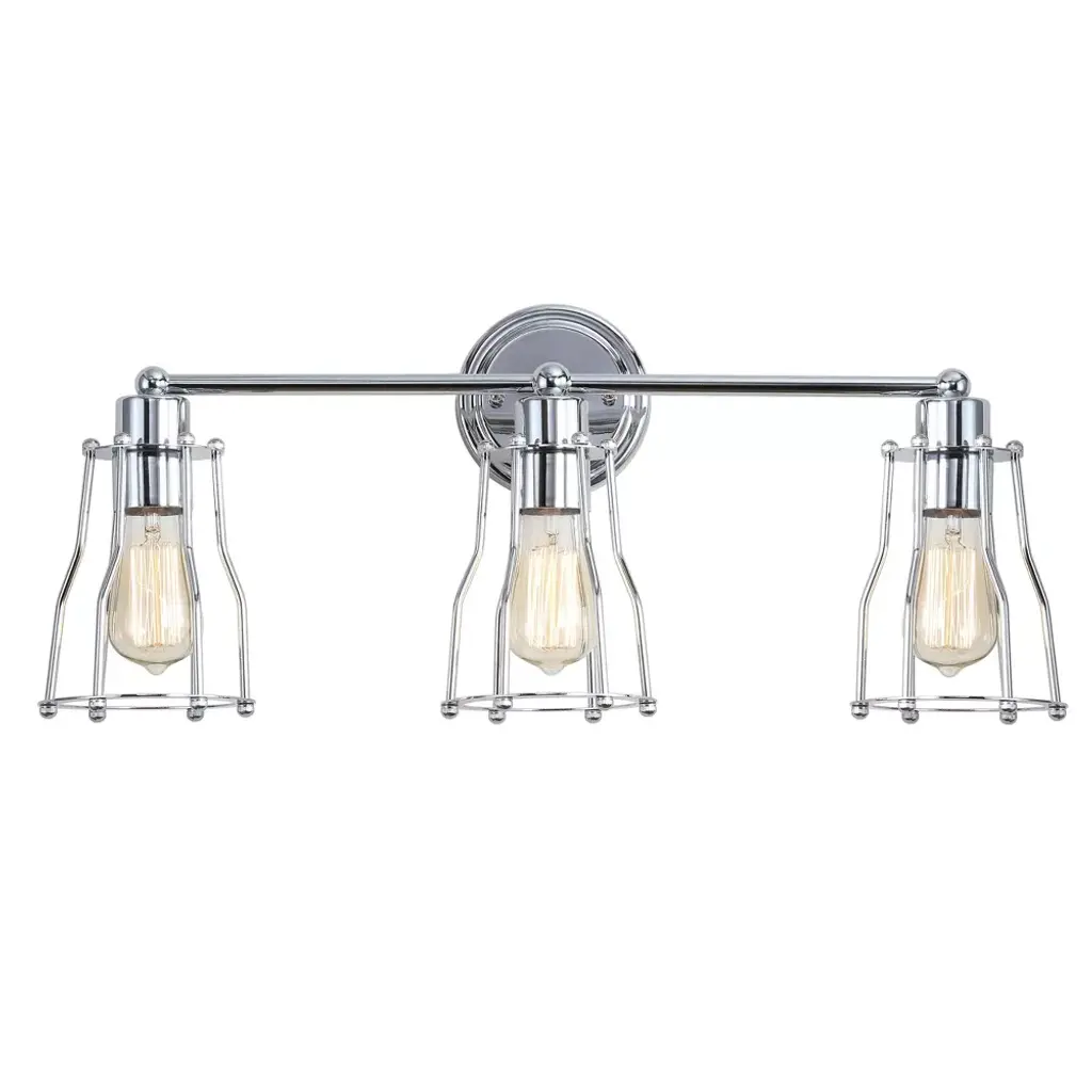 Finish Color: Chrome, Width: 15.25", Height: 10.5", Depth: 6.5", Backplate Width: 5.5", Backplate Length: 5.5", Lamping Type: Incandescent, Number Of Bulbs: 2, Wattage: 100 Watts, Moisture Rating: Damp Rated, Desc: We all harbor a little vanity, and just the right selection of vanity light is certain to satisfy. It�s an opportunity to make a bold design statement while bathing you in the perfect light. Place this fixture directly above the mirror and sink to add the perfect lighting to your bathroom. / Constructed from metal / 1 Year limited manufacturer's warranty / This fixture must be hardwired / Rated for damp location / Compatible with standard wall dimmer / Professional installation recommended.. ,