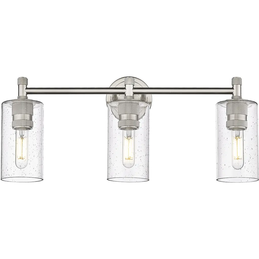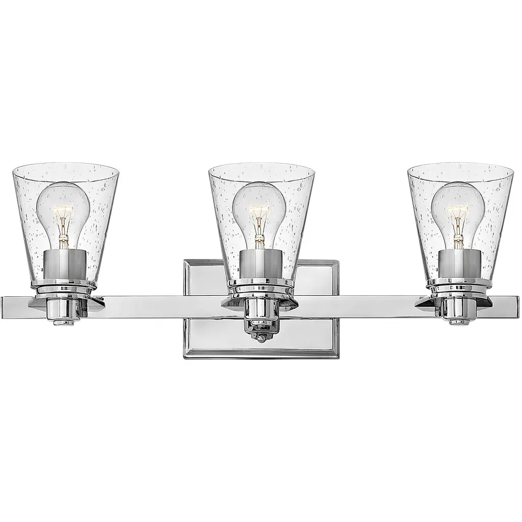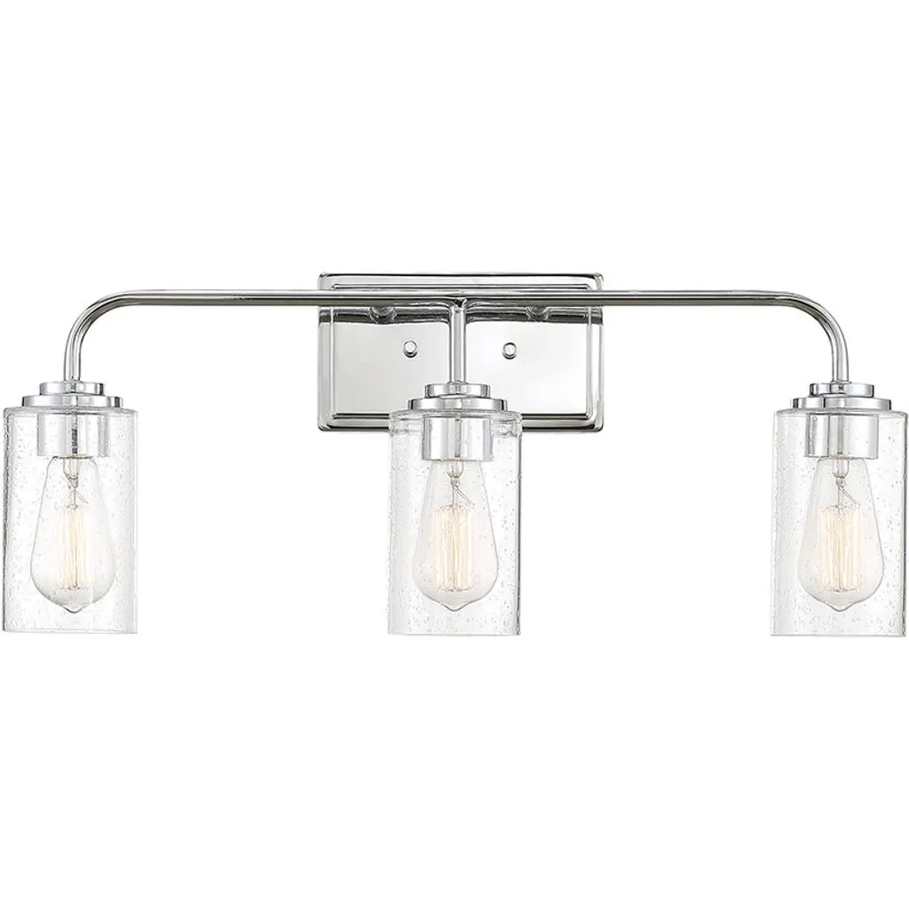 Finish Color: Chrome, Width: 22", Height: 7.88", Depth: 6", Backplate Width: 5", Backplate Length: 5", Number Of Bulbs: 3, Wattage: 100 Watts, Moisture Rating: Damp Rated, Desc: Shade Included: Yes. 1 year limited manufacture's warranty Back Plate Height: 5.00 / Back Plate Width: 5.00. ,