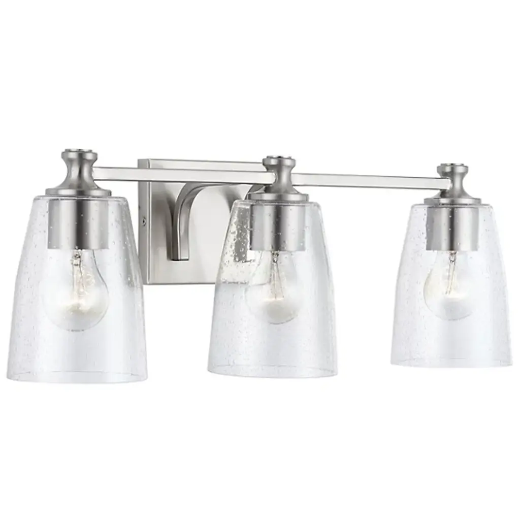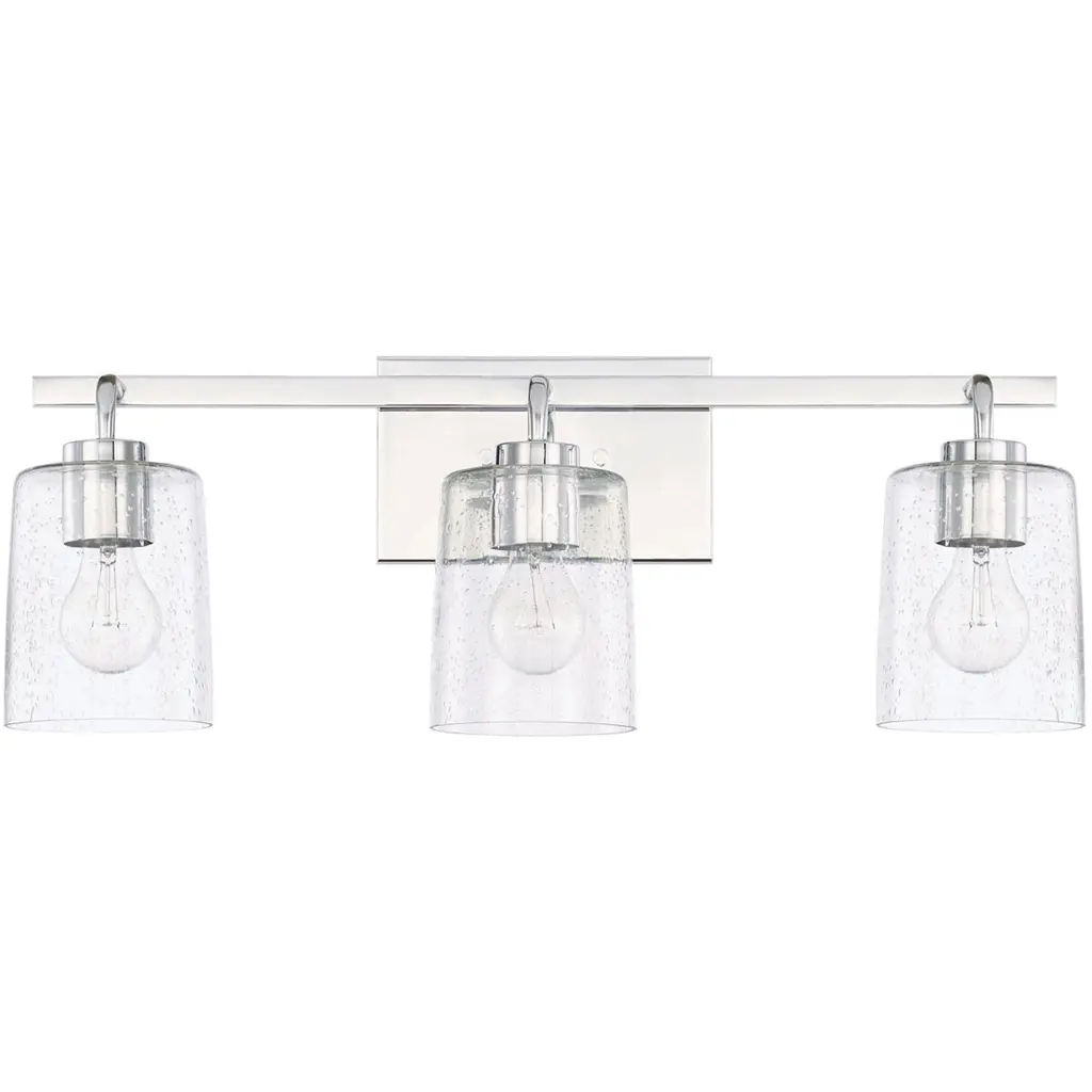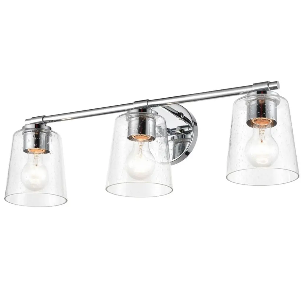 Finish Color: Chrome, Width: 24.5", Height: 8", Depth: 6", Backplate Width: 5", Backplate Length: 0.75", Number Of Bulbs: 3, Wattage: 100 Watts, Moisture Rating: Damp Rated, Desc: ,