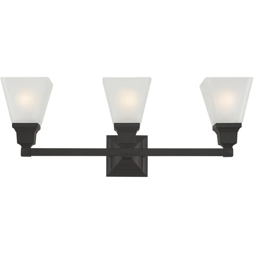 Finish Color: Matte Black, Width: 23.25", Height: 9", Depth: 7.5", Backplate Width: 6.6", Backplate Length: 4.3", Number Of Bulbs: 3, Wattage: 100 Watts, Moisture Rating: Damp Rated, Desc: We all harbor a little vanity, and just the right selection of vanity light is certain to satisfy. Its an opportunity to make a bold design statement while bathing you in the perfect light. Light bulbs are not included. Place this fixture directly above the mirror and sink to add the perfect lighting to your bathroom. Compatible with standard wall dimmerWarranty: 1 Year LimitedShade Included: Yes. Back Plate Height: 4.30 / Back Plate Width: 6.60. ,