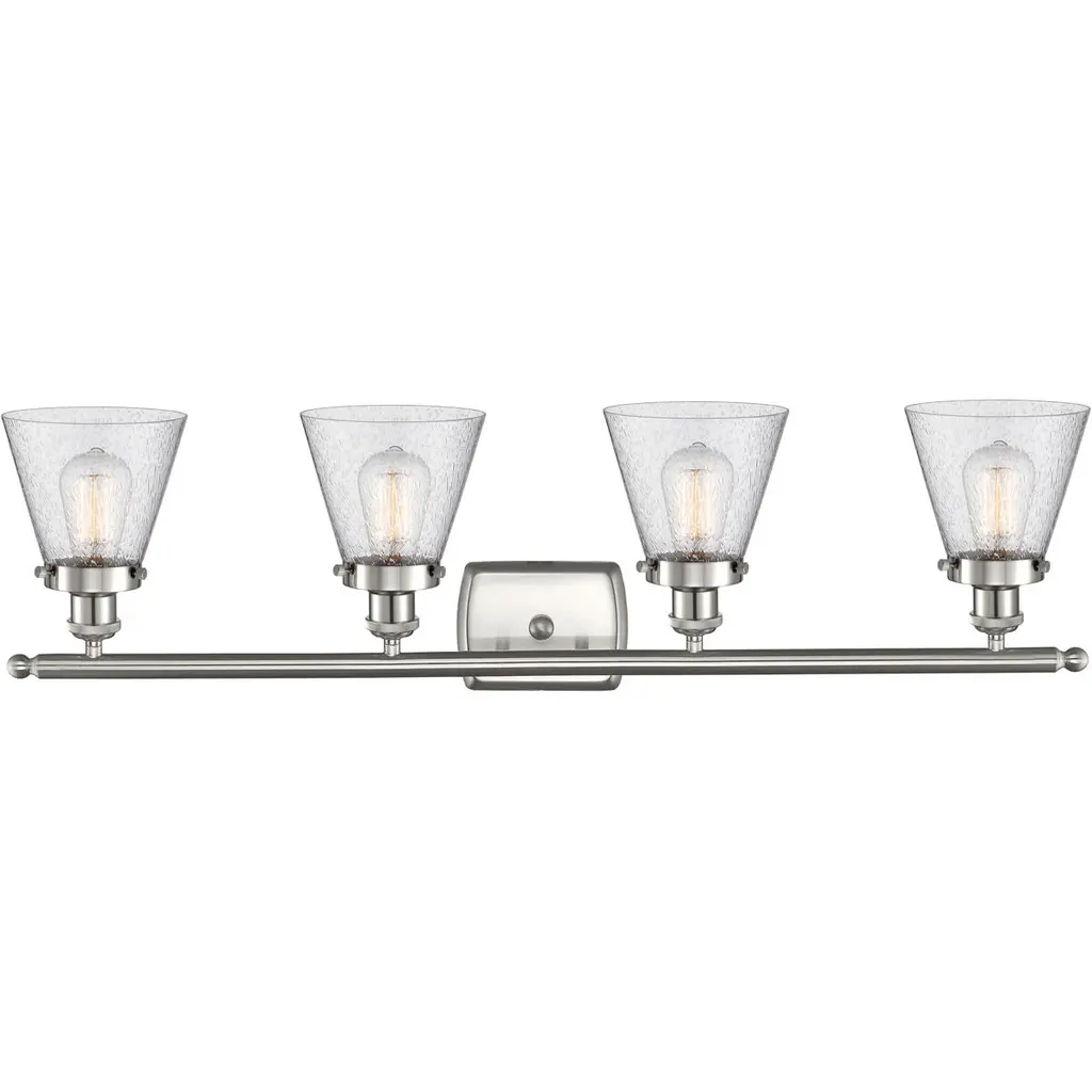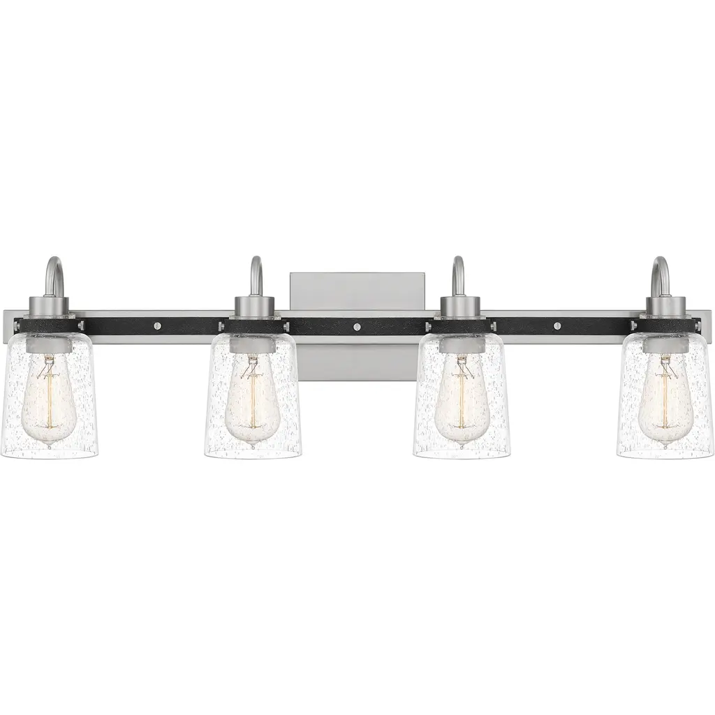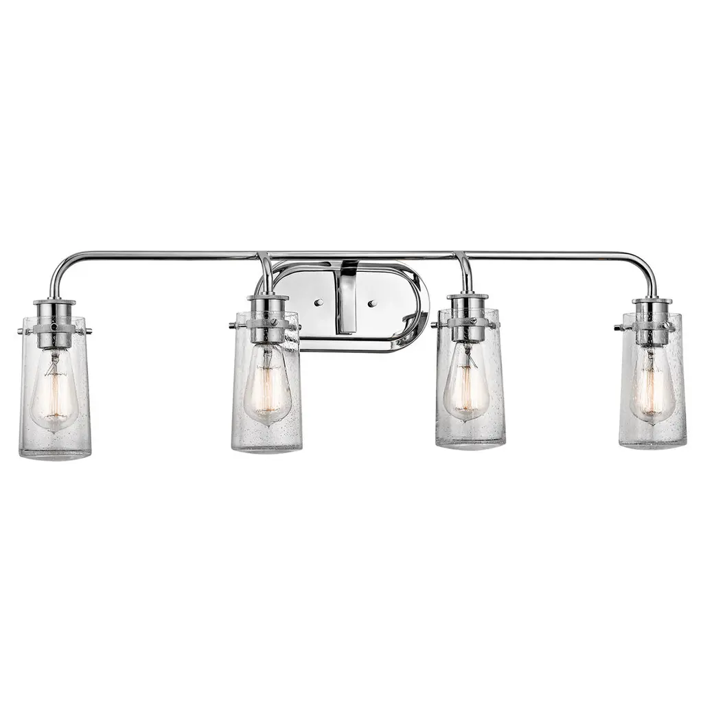 Finish Color: Chrome, Width: 31.13", Height: 7.88", Depth: 6", Number Of Bulbs: 4, Wattage: 100 Watts, Moisture Rating: Damp Rated, Desc: Shade Included: Yes. 1 year limited manufacture's warranty ,