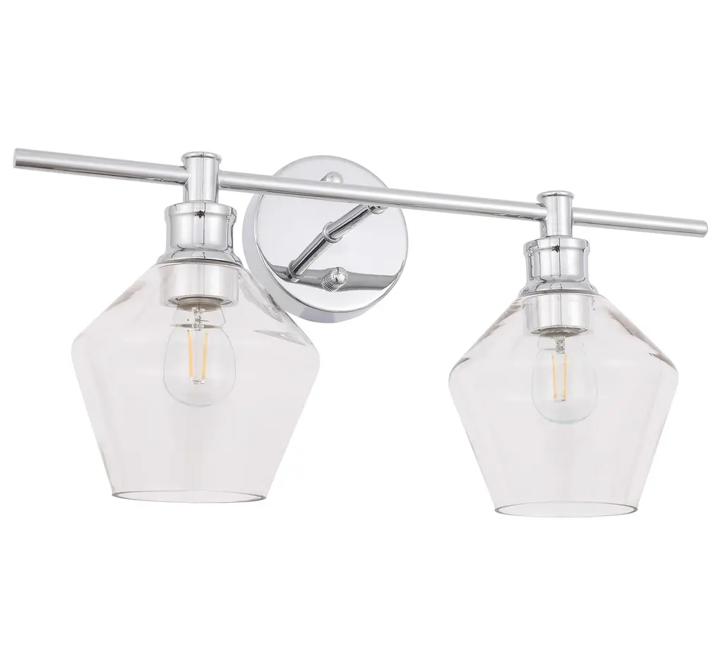 Collection: Amberose, Finish Color: Chrome, Width: 16", Height: 12", Length: 1", Depth: 7.25", Backplate Width: 5.5", Backplate Length: 5.5", Lamping Type: Incandescent, Number Of Bulbs: 2, Wattage: 60 Watts, Moisture Rating: Damp Rated, Desc: We all harbor a little vanity, and just the right selection of vanity light is certain to satisfy. It�s an opportunity to make a bold design statement while bathing you in the perfect light. Light bulbs are not included. Place this fixture directly above the mirror and sink to add the perfect lighting to your bathroom. / Compatible with standard wall dimmer / 1 Year limited manufacturer's warranty / This item is UL listed / Meets CSA standards / This item is rated for damp location. / Professional installation recommended.. ,