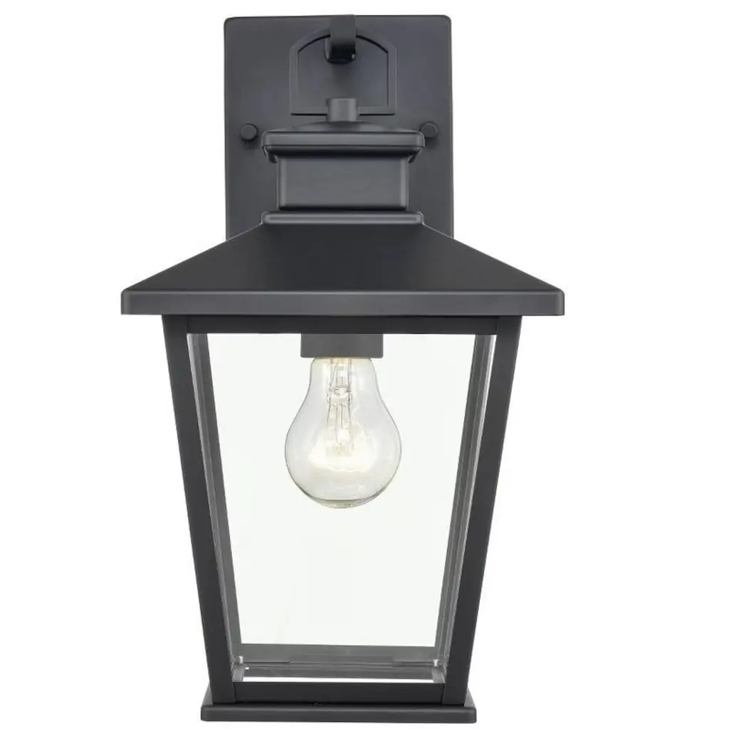 Collection: Bellmon, Finish Color: Powder Coat Black, Width: 7.5", Height: 12.75", Depth: 8.13", Number Of Bulbs: 1, Wattage: 60 Watts, Moisture Rating: Damp Rated, Desc: As twilight sets in, look to quality outdoor lighting to wrap your home in a warm and welcoming glow. Select outdoor fixtures that not only provide much needed illumination, but also a sense of style and grace and work to define your homes design. Light bulb not included. As twilight sets in, look to quality outdoor lighting to wrap your home in a warm and welcoming glow. Select outdoor fixtures that not only provide much needed illumination, but also a sense of style and grace and work to define your homes design. Light bulb not included. Constructed from metal 1 year limited manufacture's warranty This item is UL listed Meets CSA standards This item is rated for damp location. Professional installation recommended. Warranty: 1 Year LimitedShade Included: Yes. ,