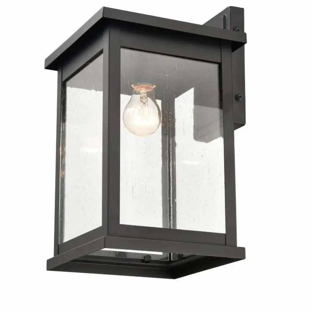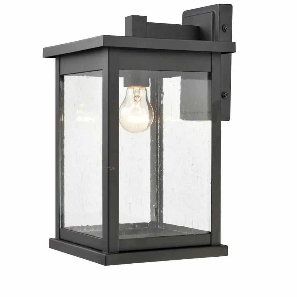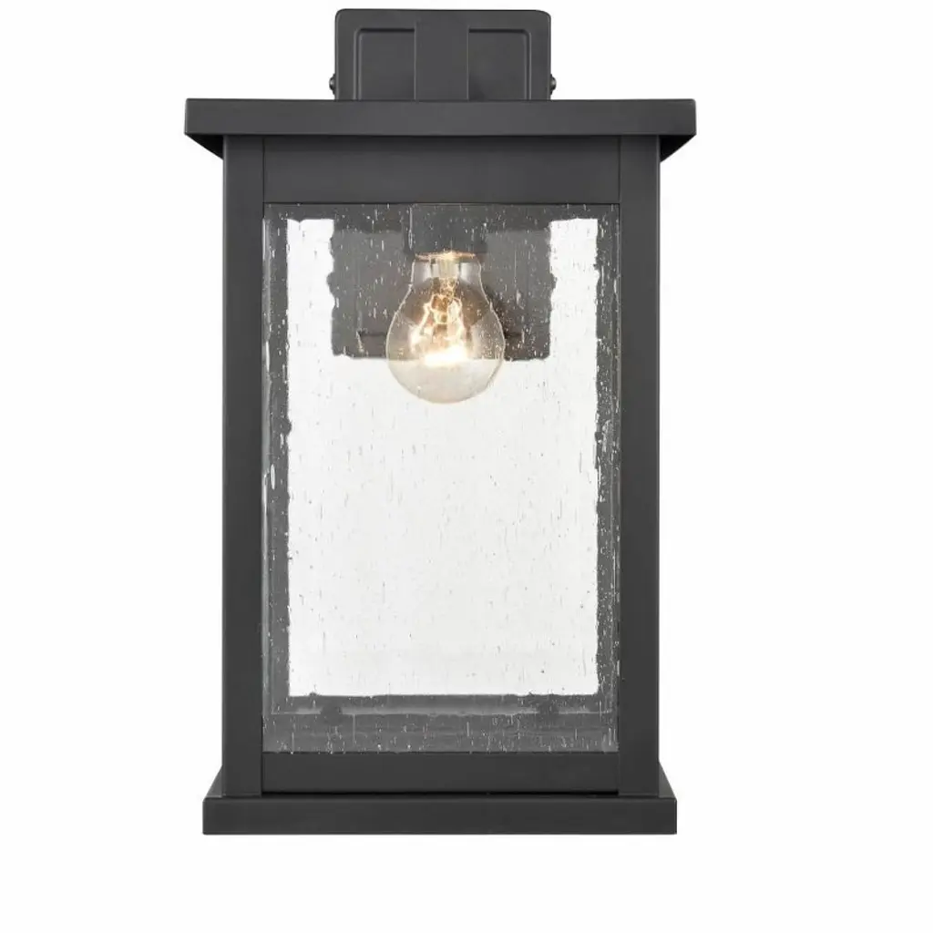 Collection: Bowton, Finish Color: Powder Coat Black, Width: 8.5", Height: 15.25", Depth: 9.5", Number Of Bulbs: 1, Wattage: 60 Watts, Moisture Rating: Damp Rated, Desc: As twilight sets in, look to quality outdoor lighting to wrap your home in a warm and welcoming glow. Select outdoor fixtures that not only provide much needed illumination, but also a sense of style and grace and work to define your homes design. Light bulb not included. As twilight sets in, look to quality outdoor lighting to wrap your home in a warm and welcoming glow. Select outdoor fixtures that not only provide much needed illumination, but also a sense of style and grace and work to define your homes design. Light bulb not included. Constructed from metal 1 year limited manufacture's warranty This item is UL listed Meets CSA standards This item is rated for damp location. Professional installation recommended. Warranty: 1 Year Limited,