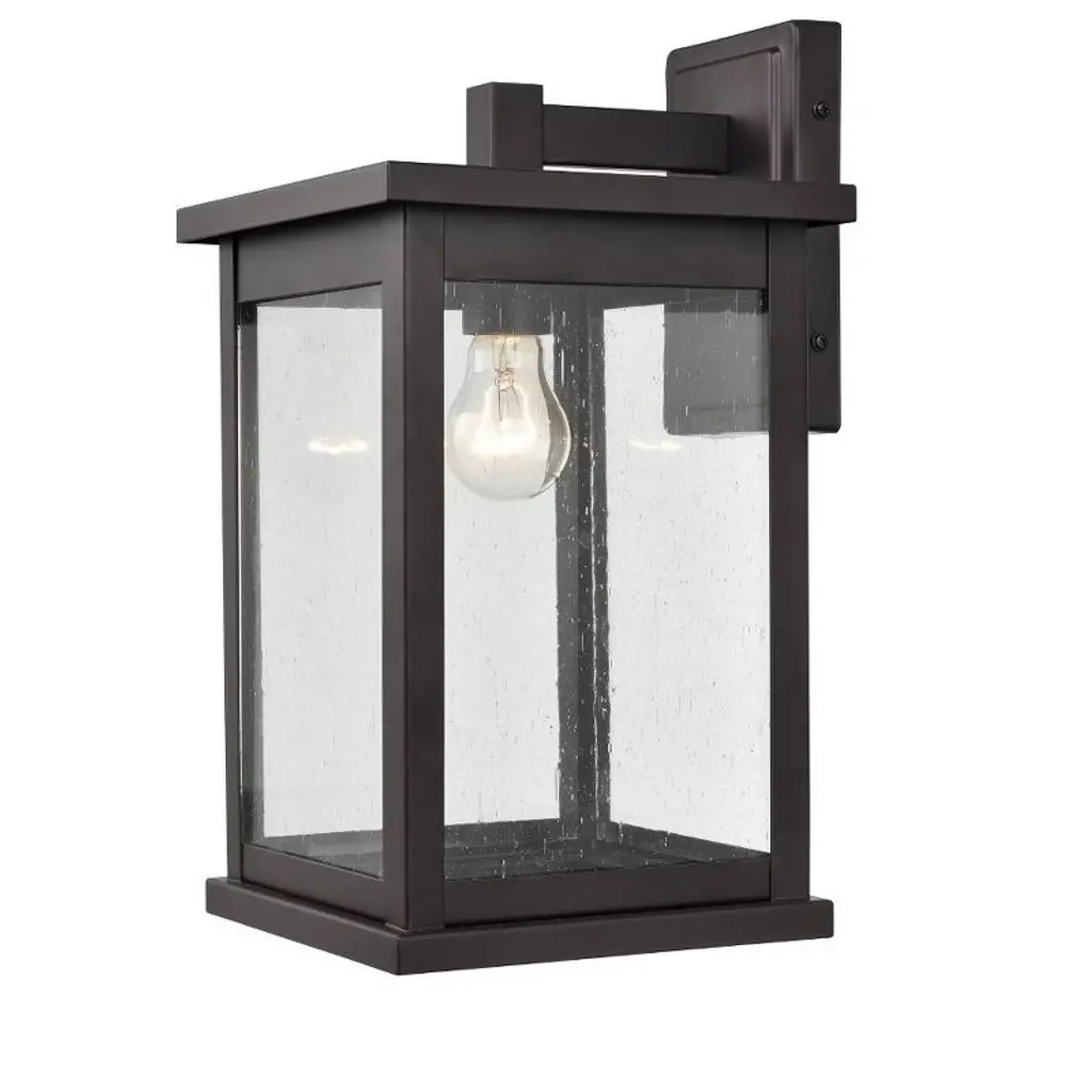 Collection: Bowton, Finish Color: Powder Coat Bronze, Width: 8.5", Height: 15.25", Depth: 9.5", Number Of Bulbs: 1, Wattage: 60 Watts, Moisture Rating: Damp Rated, Desc: As twilight sets in, look to quality outdoor lighting to wrap your home in a warm and welcoming glow. Select outdoor fixtures that not only provide much needed illumination, but also a sense of style and grace and work to define your homes design. Light bulb not included. As twilight sets in, look to quality outdoor lighting to wrap your home in a warm and welcoming glow. Select outdoor fixtures that not only provide much needed illumination, but also a sense of style and grace and work to define your homes design. Light bulb not included. Constructed from metal 1 year limited manufacture's warranty This item is UL listed Meets CSA standards This item is rated for damp location. Professional installation recommended. Warranty: 1 Year Limited,