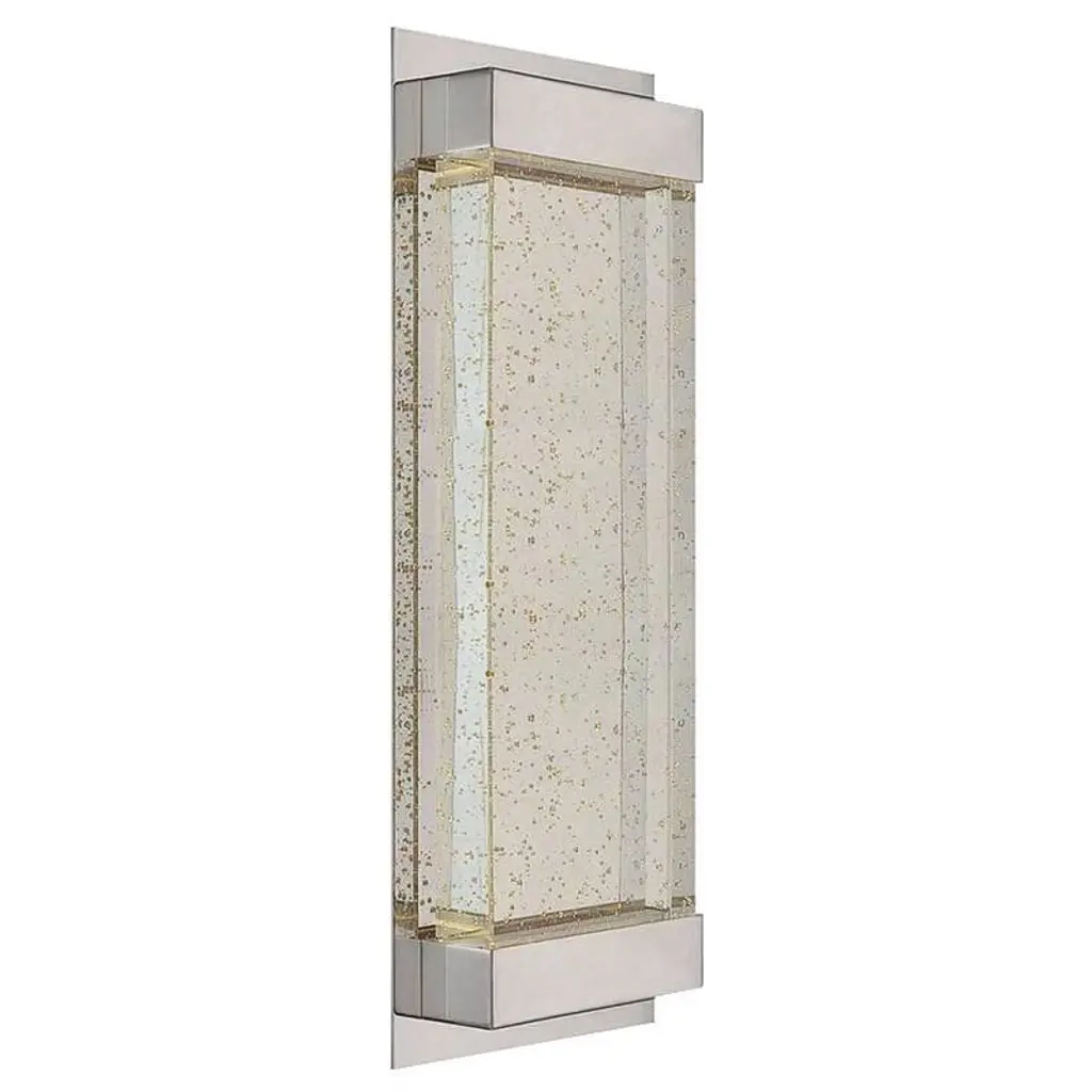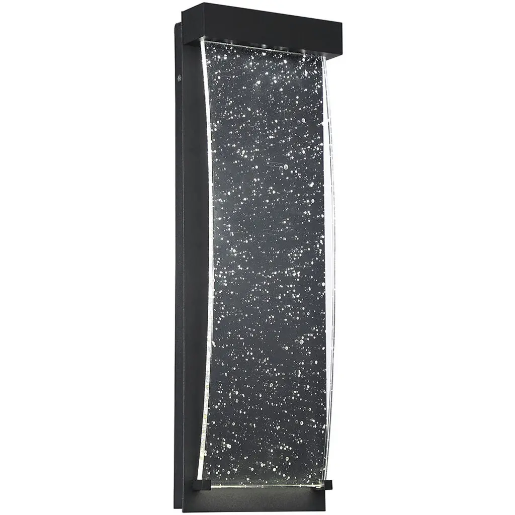 Collection: Ederle, Finish Color: Powder Coat Black, Width: 6.5", Height: 15.94", Depth: 4.02", Backplate Width: 6.26", Backplate Length: 9.45", Lamping Type: LED, Number Of Bulbs: 1, Wattage: 11 Watts, Lumens: 850, Moisture Rating: Wet Rated, Desc: The Ederle Collection of wall lanterns creates a stunning effect with water-infused, clear seedy glass panels set against boldly modern fixtures. Finished in either powder coat black or powder coat bronze, these extraordinary fixtures make an audacious design statement. Wall Lantern with integrated LED, minimum 90 CRI and 850 lumens / Constructed from metal / 1 Year limited manufacturer's warranty / This fixture must be hardwired / Rated for wet location / This lighting fixture features clear water seedy glass / Professional installation recommended.. ,