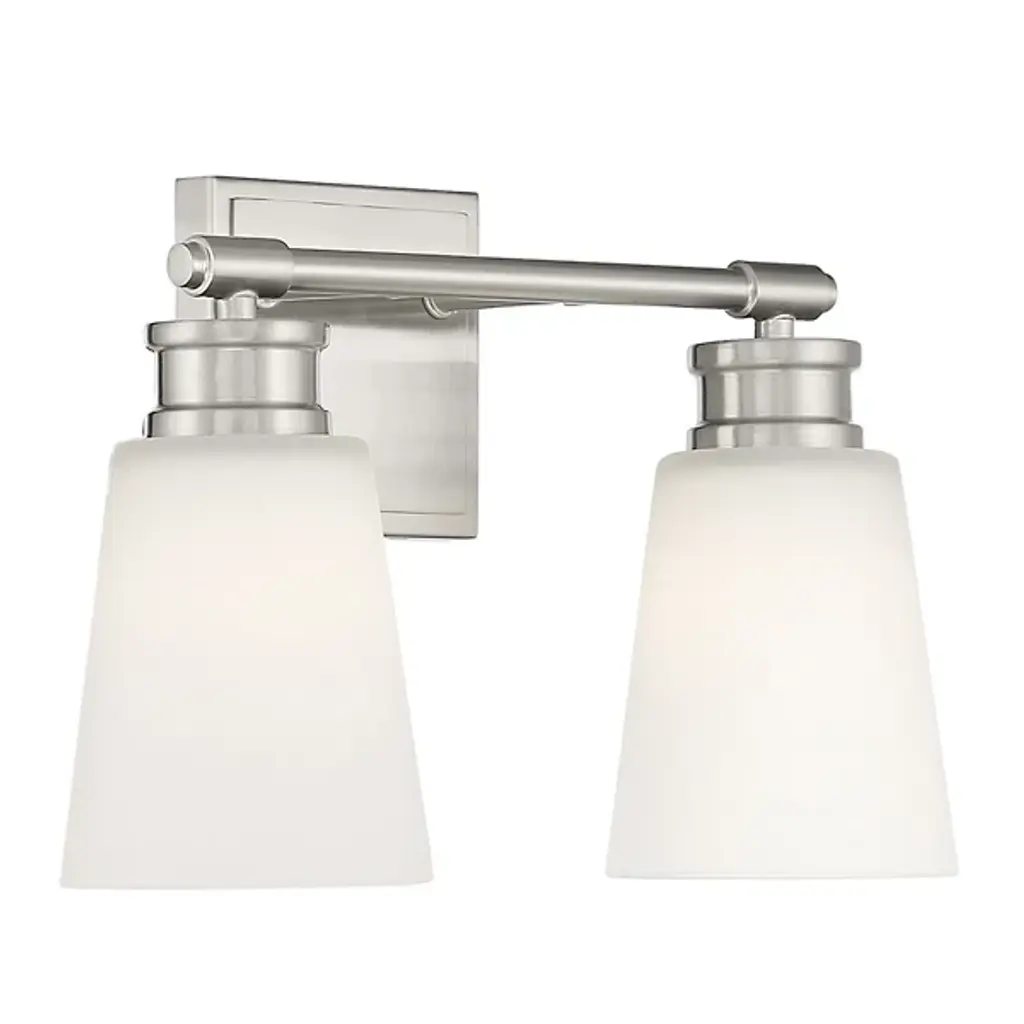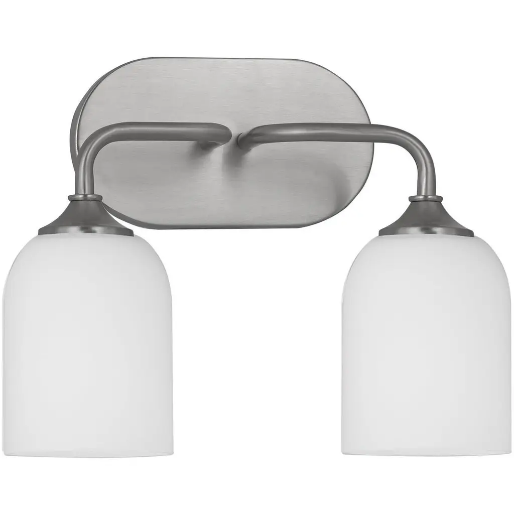 Collection: Franklin, Finish Color: Brushed Pewter, Width: 14", Height: 7.75", Depth: 6.75", Number Of Bulbs: 2, Wattage: 60 Watts, Moisture Rating: Damp Rated, Desc: We all harbor a little vanity, and just the right selection of vanity light is certain to satisfy. It's an opportunity to make a bold design statement while bathing you in the perfect light. Light bulbs are not included. Place this fixture directly above the mirror and sink to add the perfect lighting to your bathroom. Compatible with standard wall dimmer 1 year limited manufacture's warranty This item is UL listed This item is cUL listed This item is rated for damp location. Professional installation recommended. 1 Year LimitedShade Included: Yes. ,
