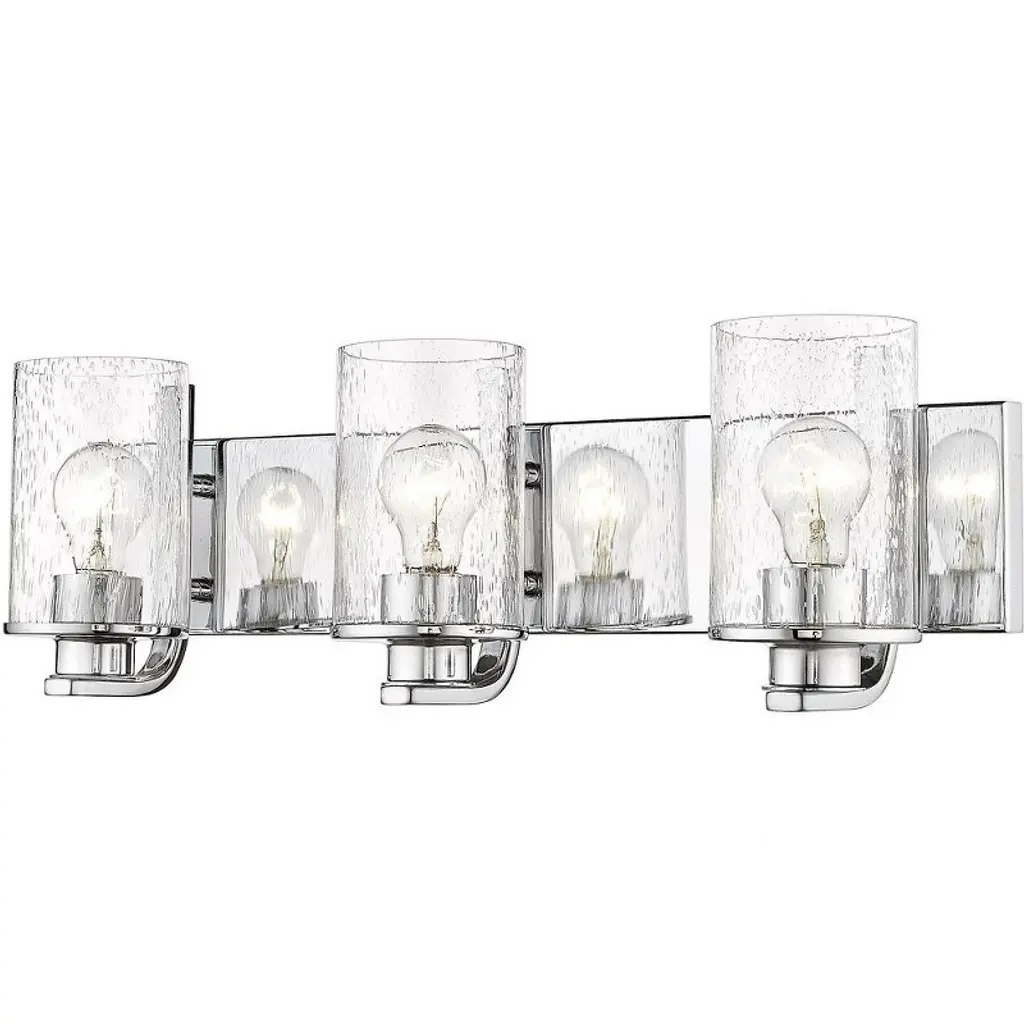 Collection: Natalie, Finish Color: Satin Nickel, Width: 32", Height: 10", Depth: 8.25", Backplate Width: 32", Backplate Length: 5", Number Of Bulbs: 4, Wattage: 100 Watts, Moisture Rating: Damp Rated, Desc: We all harbor a little vanity, and just the right selection of vanity light is certain to satisfy. Its an opportunity to make a bold design statement while bathing you in the perfect light. Light bulbs are not included. Place this fixture to the side of your mirror to add the perfect lighting to your bathroom. Compatible with standard wall dimmer 1 year limited manufacture's warranty This item is UL listed Meets CSA standards This item is rated for damp location. Professional installation recommended. Warranty: 1 Year LimitedShade Included: Yes. Back Plate Height: 5.00 / Back Plate Width: 32.00. ,