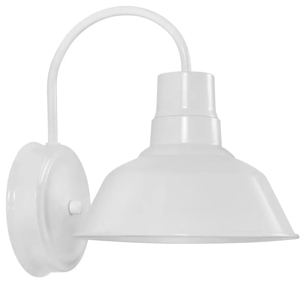 Collection: R Series, Material: Metal, Finish Color: White, Width: 8", Height: 11.75", Depth: 11", Lamping Type: Incandescent, Number Of Bulbs: 1, Wattage: 100 Watts, Moisture Rating: Wet Rated, Desc: As twilight sets in, look to quality outdoor lighting to wrap your home in a warm and welcoming glow. Select outdoor fixtures that not only provide much needed illumination, but also a sense of style and grace and work to define your homes design. Requires (1) 100 watt medium (E26) bulb required Constructed from metal 1 year limited manufacture's warranty This item is UL listed Meets CSA standards This item is rated for wet location. Professional installation recommended. 1 Year Limited,