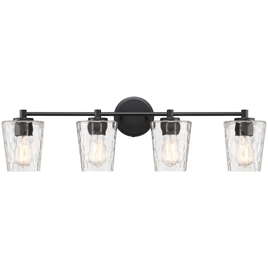Collection: Taos, Finish Color: Matte Black/Wood Grain, Width: 32", Height: 10.25", Depth: 6.25", Backplate Width: 5", Backplate Length: 4", Number Of Bulbs: 4, Wattage: 100 Watts, Dimmable: No, Moisture Rating: Damp Rated, Desc: We all harbor a little vanity, and just the right selection of vanity light is certain to satisfy. Its an opportunity to make a bold design statement while bathing you in the perfect light. Light bulbs are not included. Place this fixture directly above the mirror and sink to add the perfect lighting to your bathroom. Compatible with standard wall dimmer 1 year limited manufacture's warranty This item is UL listed Meets CSA standards This item is rated for damp location. Professional installation recommended. 1 Year LimitedShade Included: Yes. Back Plate Height: 4.00 / Back Plate Width: 5.00. ,