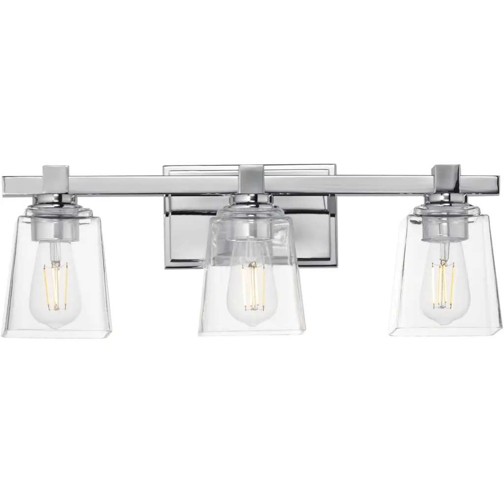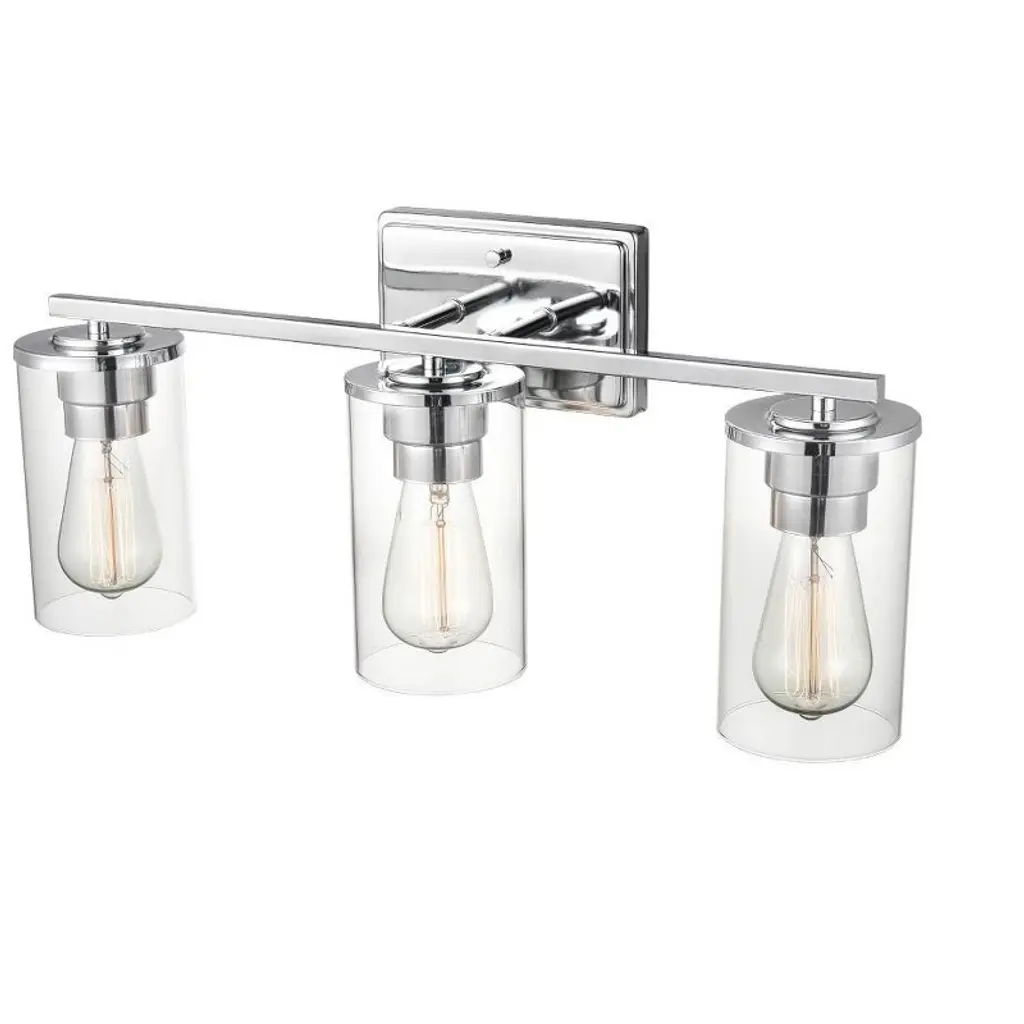 Collection: Verlana, Finish Color: Chrome, Width: 22", Height: 9.88", Depth: 6", Number Of Bulbs: 3, Wattage: 60 Watts, Moisture Rating: Damp Rated, Desc: We all harbor a little vanity, and just the right selection of vanity light is certain to satisfy. Its an opportunity to make a bold design statement while bathing you in the perfect light. Light bulbs are not included. Place this fixture to the side of your mirror to add the perfect lighting to your bathroom. Compatible with standard wall dimmer 1 year limited manufacture's warranty This item is UL listed Meets CSA standards This item is rated for damp location. Professional installation recommended. Warranty: 1 Year LimitedShade Included: Yes. ,
