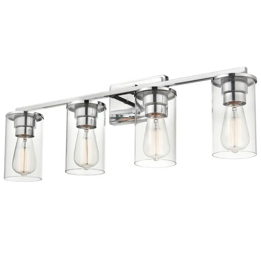 Collection: Verlana, Finish Color: Chrome, Width: 27.63", Height: 9.88", Depth: 6", Number Of Bulbs: 4, Wattage: 60 Watts, Moisture Rating: Damp Rated, Desc: We all harbor a little vanity, and just the right selection of vanity light is certain to satisfy. Its an opportunity to make a bold design statement while bathing you in the perfect light. Light bulbs are not included. Place this fixture to the side of your mirror to add the perfect lighting to your bathroom. Compatible with standard wall dimmer 1 year limited manufacture's warranty This item is UL listed Meets CSA standards This item is rated for damp location. Professional installation recommended. Warranty: 1 Year LimitedShade Included: Yes. ,