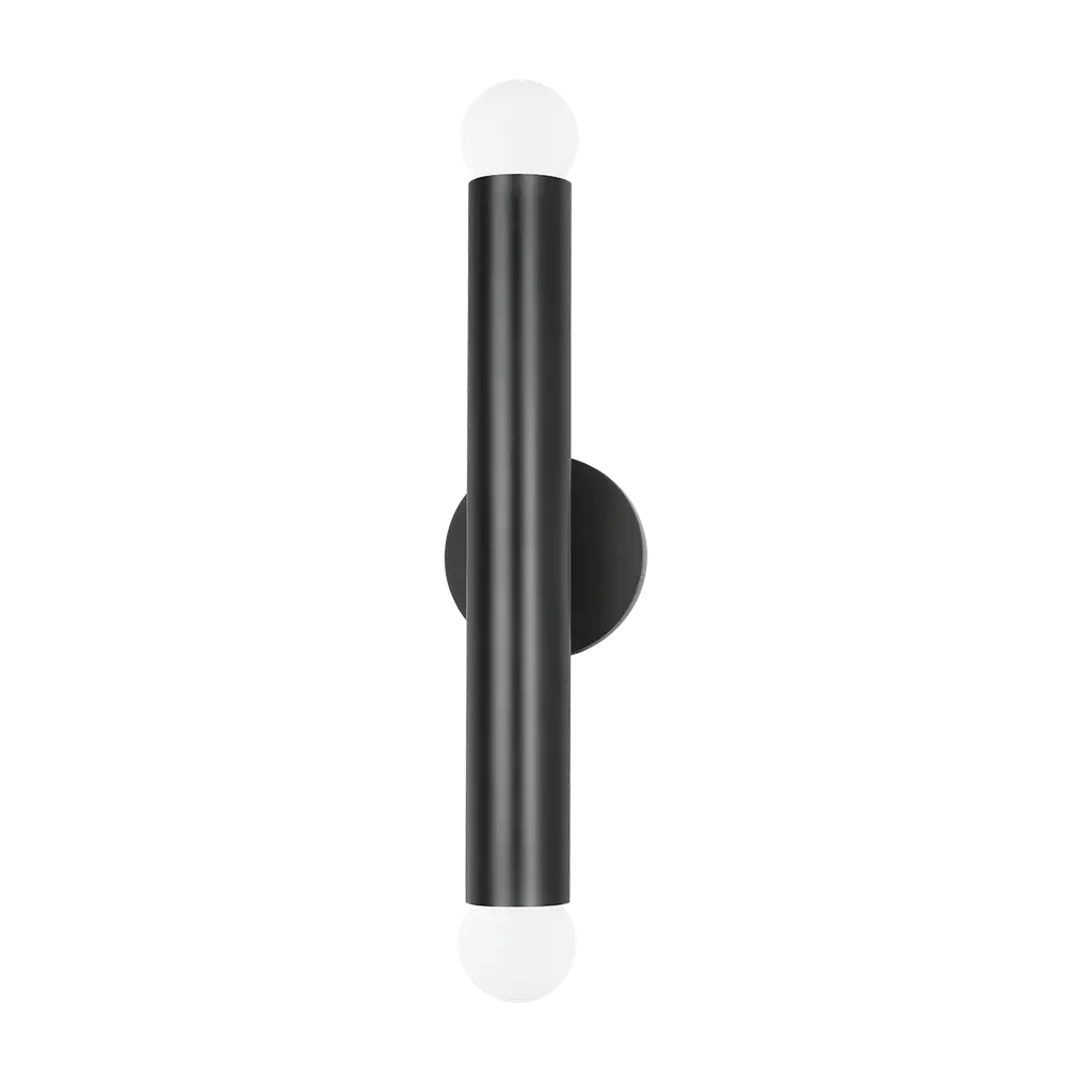 Elegant and articulate without becoming over-complicated. The Millie Wall Sconce from Lark offers a stark and linear enhancement to its surroundings, relying on steel construction and sleek circular wall mount and short stem to secure a vertical rod ending in open lamping at each end. The sleek finish of the fixture gleams gorgeously in the ambient light of the lamping, extending a stylish, unpretentious presence far broader than its own reach.