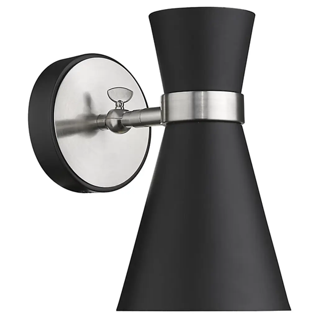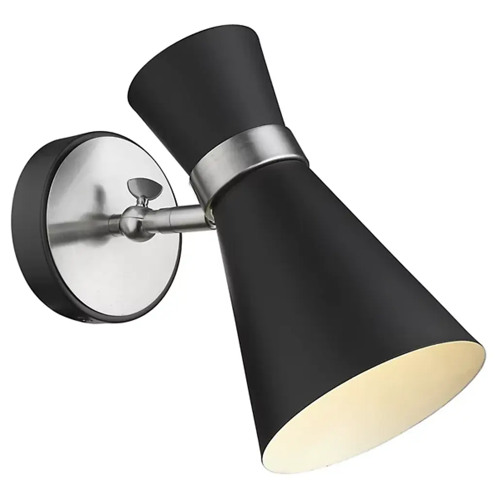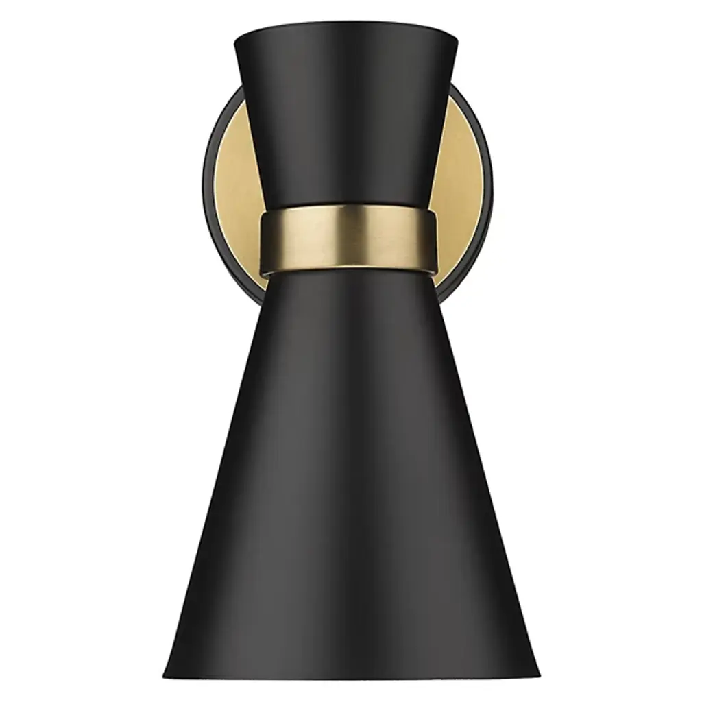 The Milton Wall Sconce from Alder & Ore steps up the chic charm and tailored lighting feel of rooms and hallways. It rests on the wall with a compact circular backplate that fits in small nooks. An understated joint fitted to the sconce’s arm lets one freely adjust the angle of the shade. Accented with a high-style ring, the tapered shade evokes mid-century modern classics. This shade softens the light and points it for ambiance or task purposes.