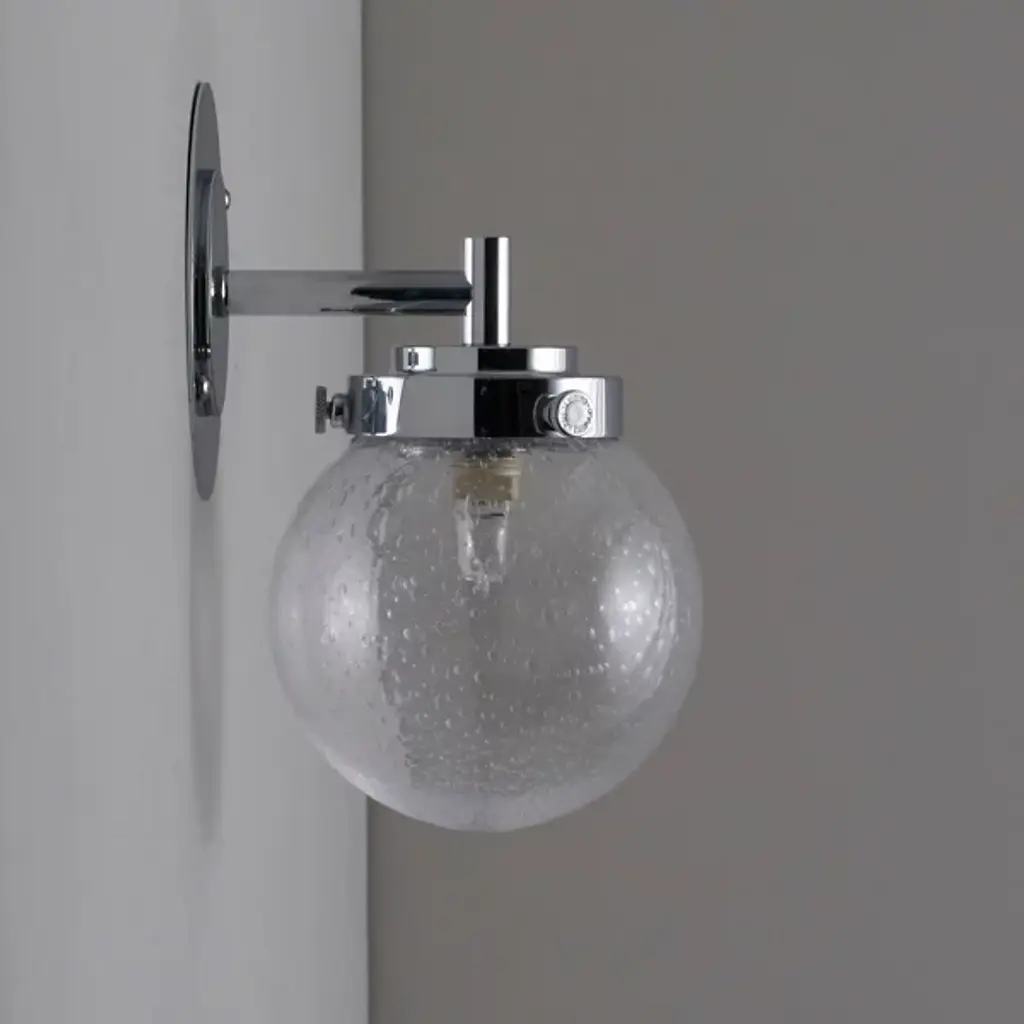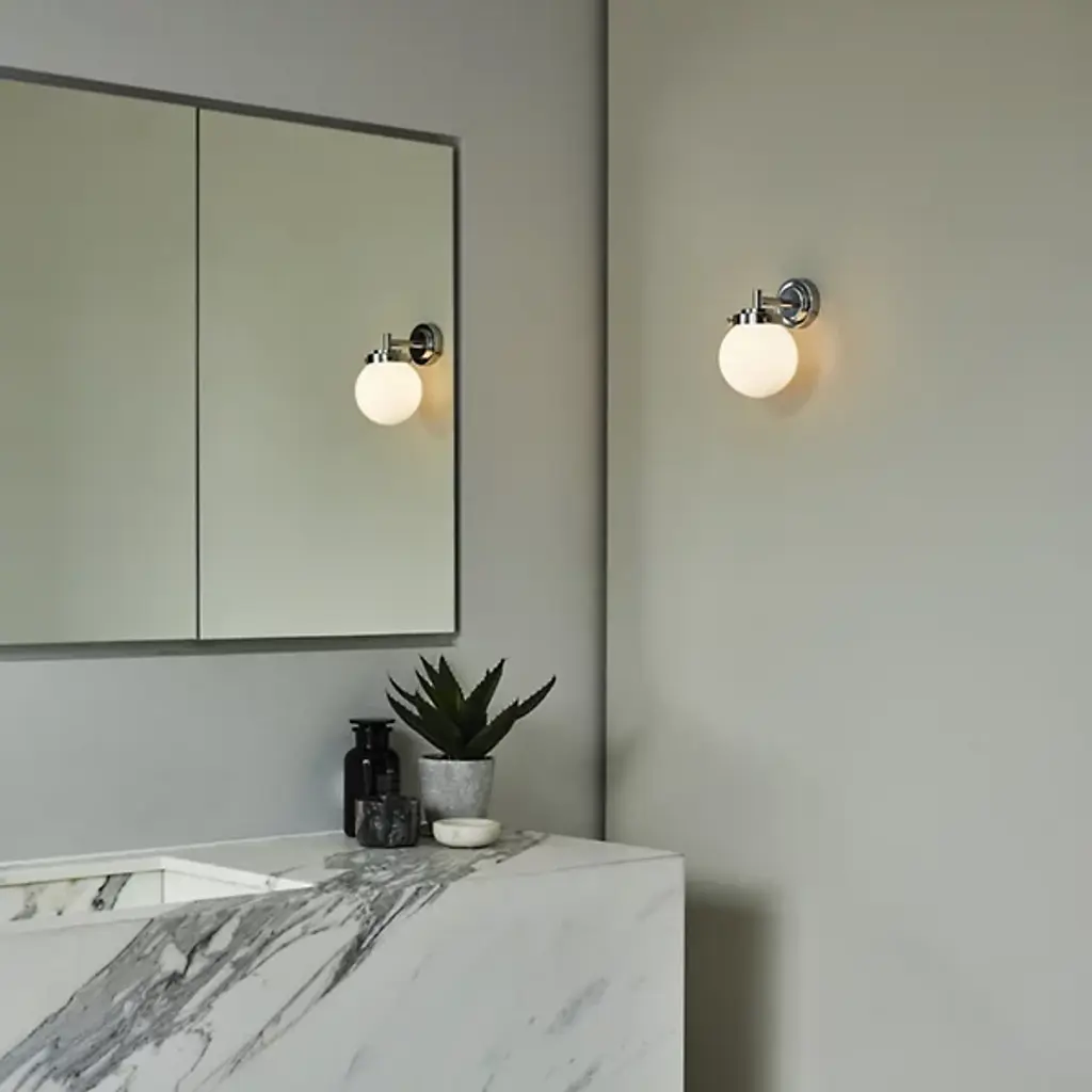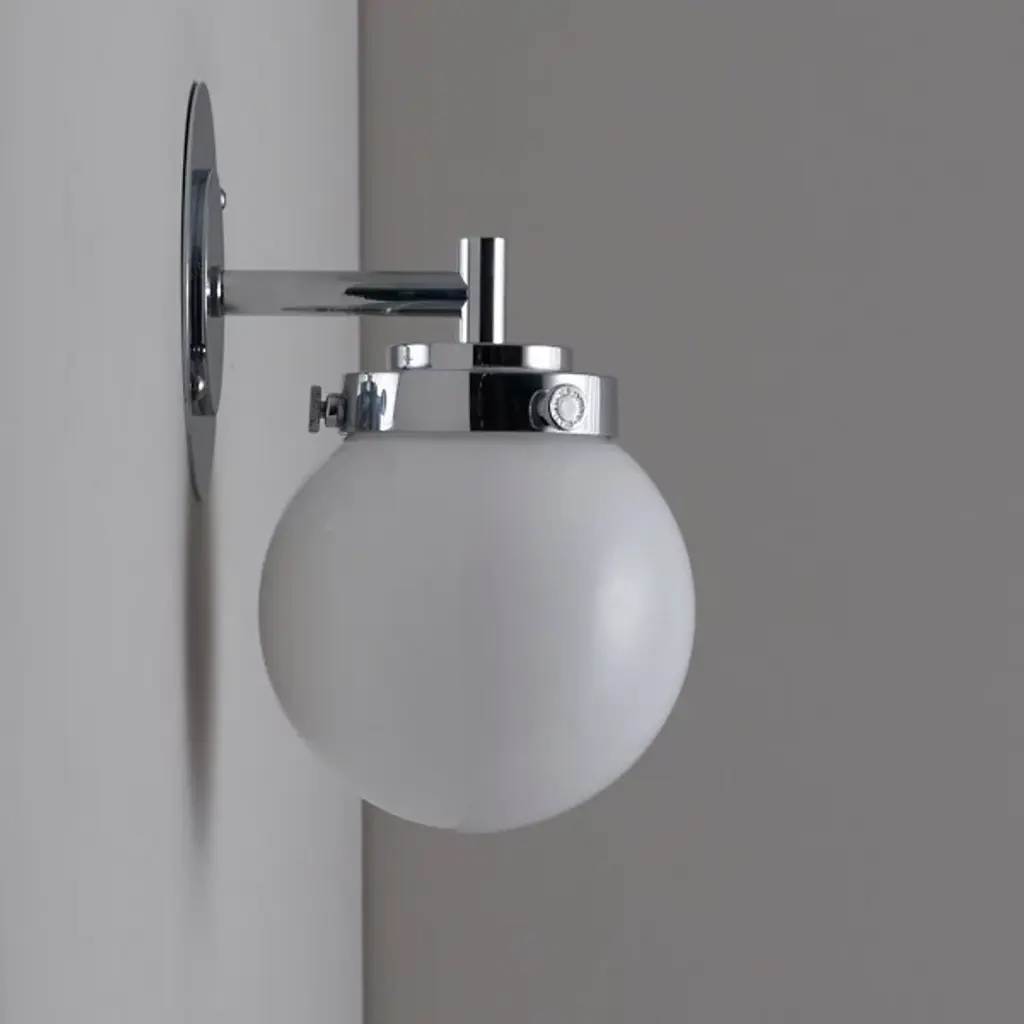 The Mini Globe Bath Wall Sconce by Original BTC is a cool and compact piece infused with some Art Deco flair. Designed and crafted in the UK, each small glass globe is hand-blown by skilled craftsmen in a time-intensive process that produces a unique sphere. Showcasing the care and attention paid to its creation, this glass piece is paired with metal hardware to support its beautiful form as it lends spaces an artful touch and lovely layer of filtered illumination.