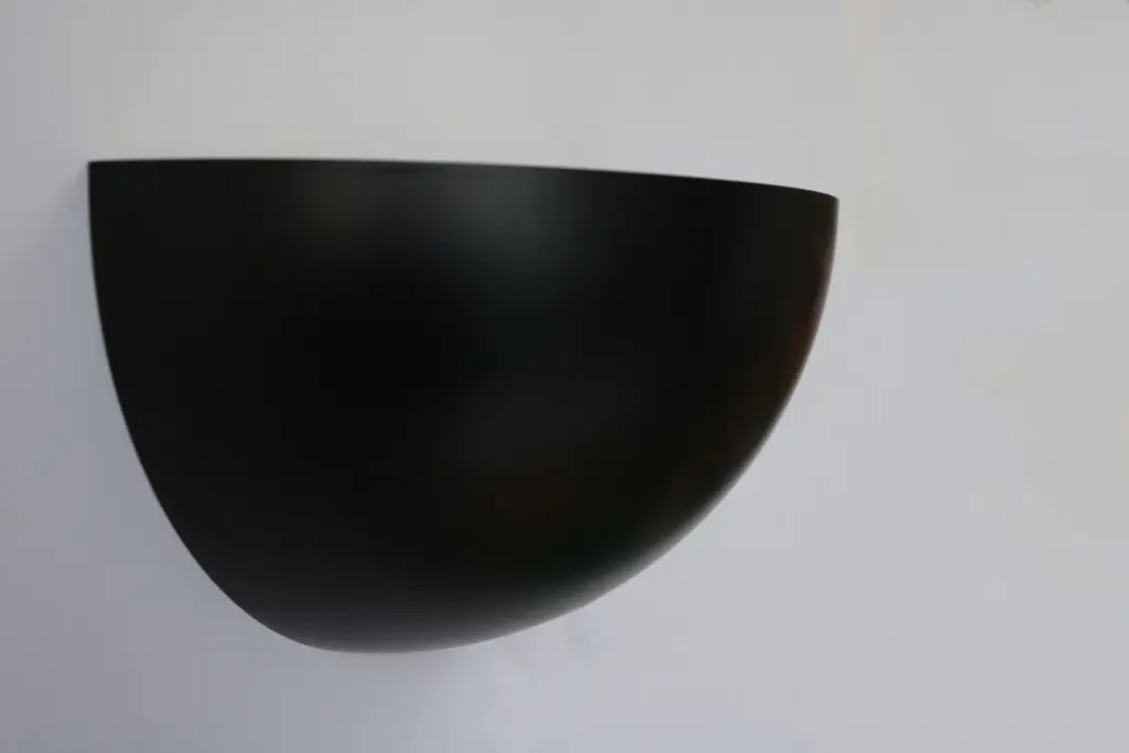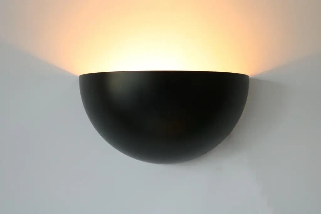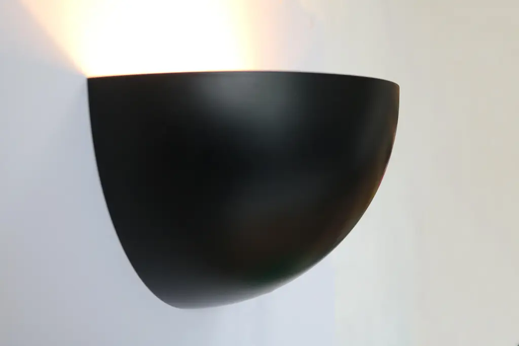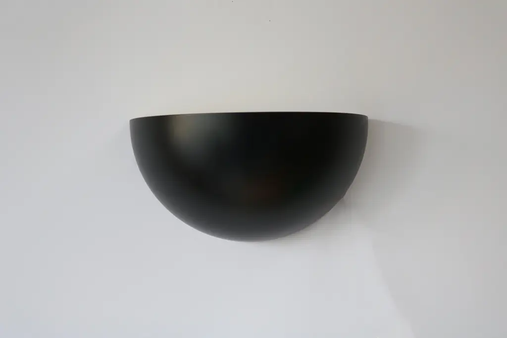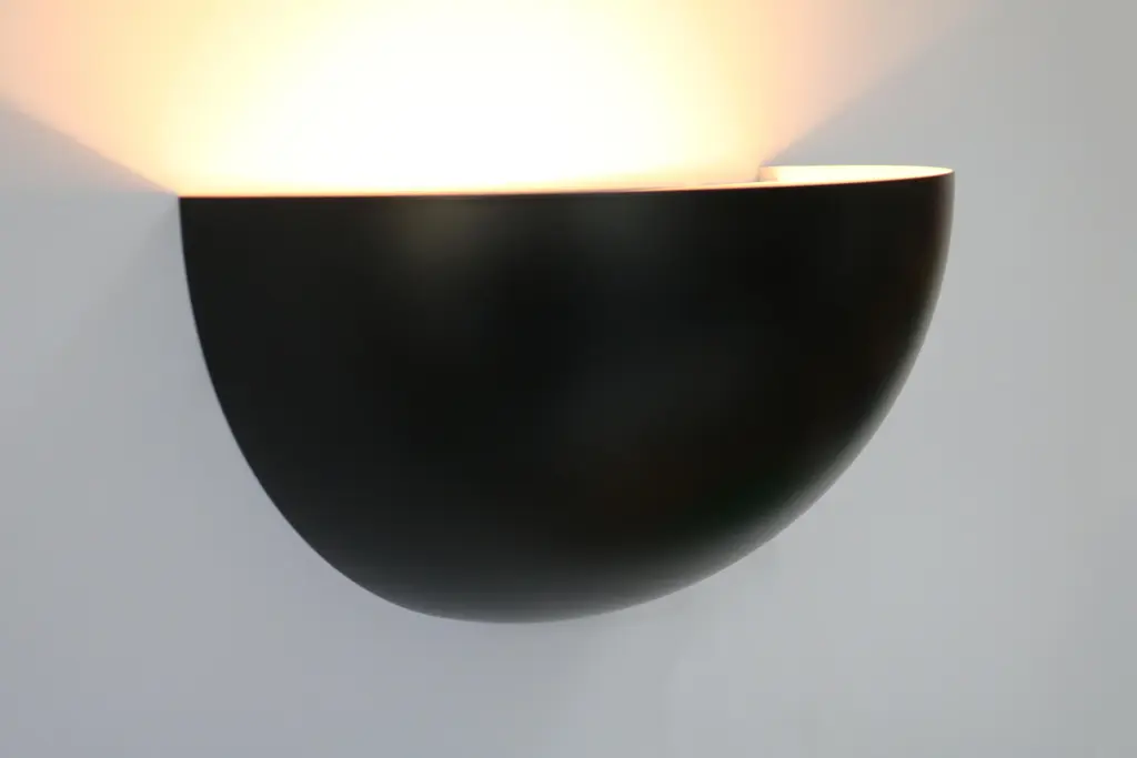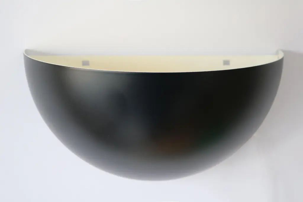 Danish minimalist wall lamp Made by Lyfa 1960s Made in Denmark Black on the outside, creamy white on the inside Width 25.5cm Height 12.5cm Depth 12.5cm 1x E14 socket / excl. Light bulbs Indirect light is emitted upwards Good condition with only slight signs of wear and patina This piece has an attribution mark, I am sure that it is completely authentic and take full responsibility for any authenticity issues arising from misattribution, Up to 250V (Europe/UK Standard).The wiring of this item may be original and might need replacement, if not specified otherwise.