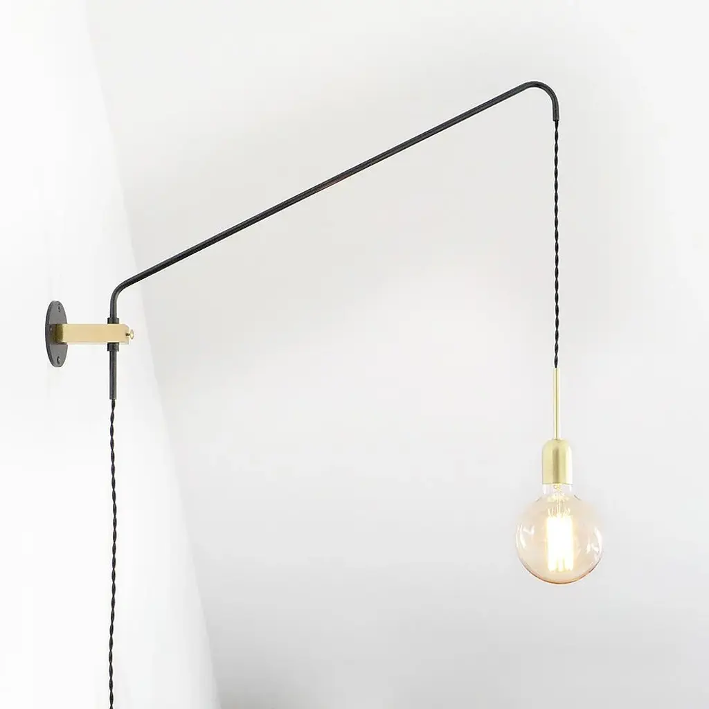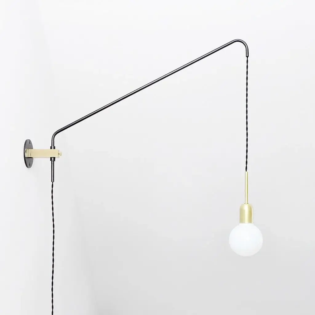 This handmade minimalist wall lamp is made of steel tubes and brass elements. The steel is oxidized and preserved. The arm can be tilted to the left and right side and fixed by a screw. This lamp has the option of adjusting the length of the cable coming out of the arm. Just simply pull the cord and it will locks itself at a fixed height. The switch is located on the cable, 1 meter or 39'' below the wall fixing. The lamp is fitted with a standard e27 / e26 thread bulb. It is recommended to use globe or edison bulbs. The lamp is suitable for 230v and 110v by using the corresponding bulb. Black head screws and wall dowels are included. the light bulb is not included. additional dimensions: arm length - 70cm / 27.5'' cable length - 450 cm / 14.76" up to 250v (europe/uk standard).