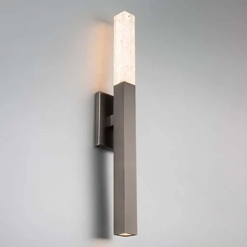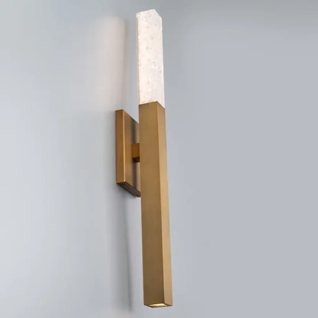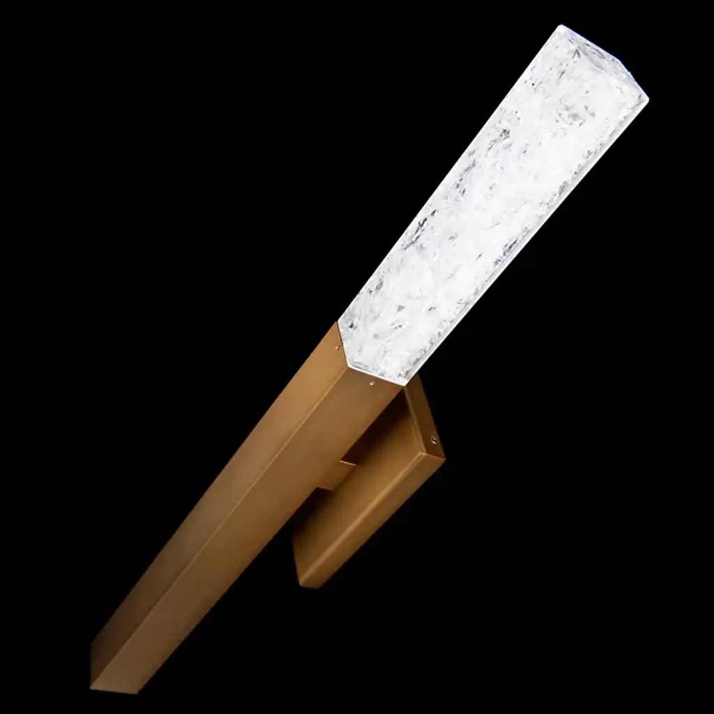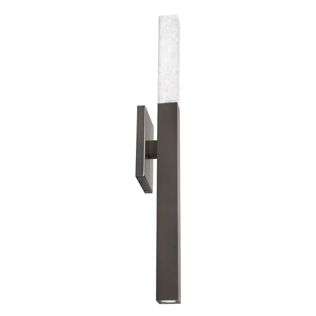 Refined simplicity meets artisanal sparkle. The Minx LED Wall Sconce by Modern Forms offers a refreshing approach to modern lighting. A rectangular metal backplate supports the fixture as it holds a vertical metal beam. Its upper end is comprised of stunning crushed K5 crystal that seamlessly continues the beam’s shape and emits a warm glow. Its integrated and energy-efficient LED light source is concealed within the piece, offering an ethereal accent for any room in the home.
