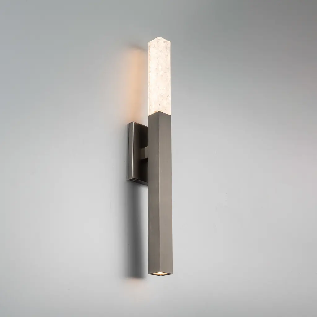 A glittering torch of illuminated reclaimed fragments of crystal. Elevate your design with illumination that adds a finishing touch of refinement. Discreetly hidden within the luminaire, LEDs offer long-lasting up and down lighting.