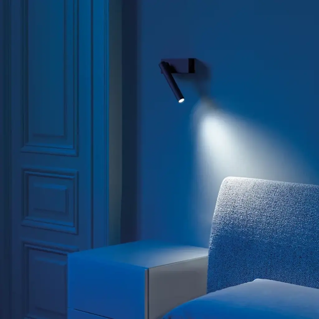 The Mira LED Wall Sconce from Davide Groppi offers a combination of simple shapes that come together to create a beautiful, contemporary light fixture. Designed by Omar Carraglia, a crisp rectangular base meets a slender rotating cylinder, creating a quietly striking silhouette. The integrated LED casts precise, directional light, ideal for setting the perfect ambiance. With the addition of an ETL dimmer, the brightness adjusts effortlessly to suit the mood.