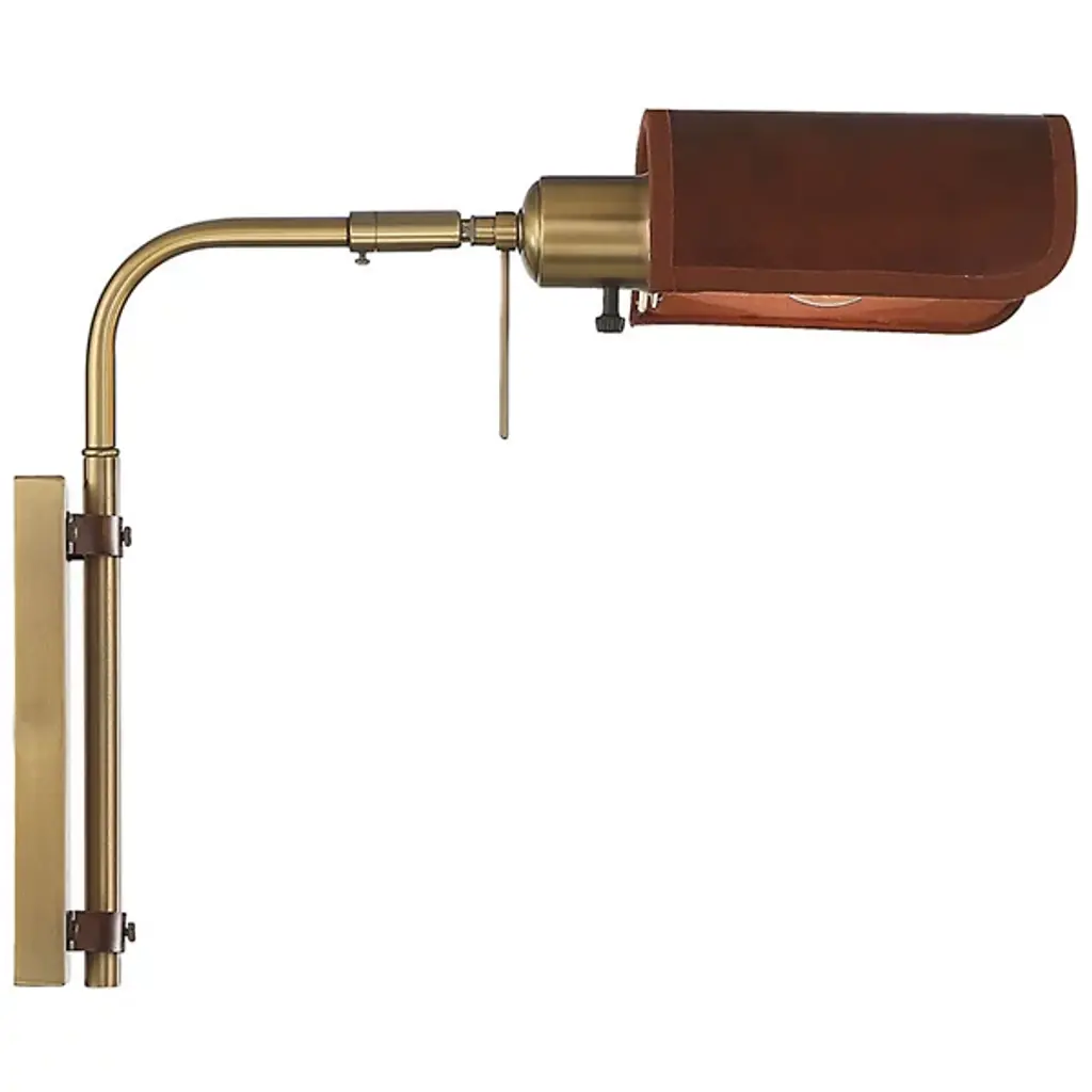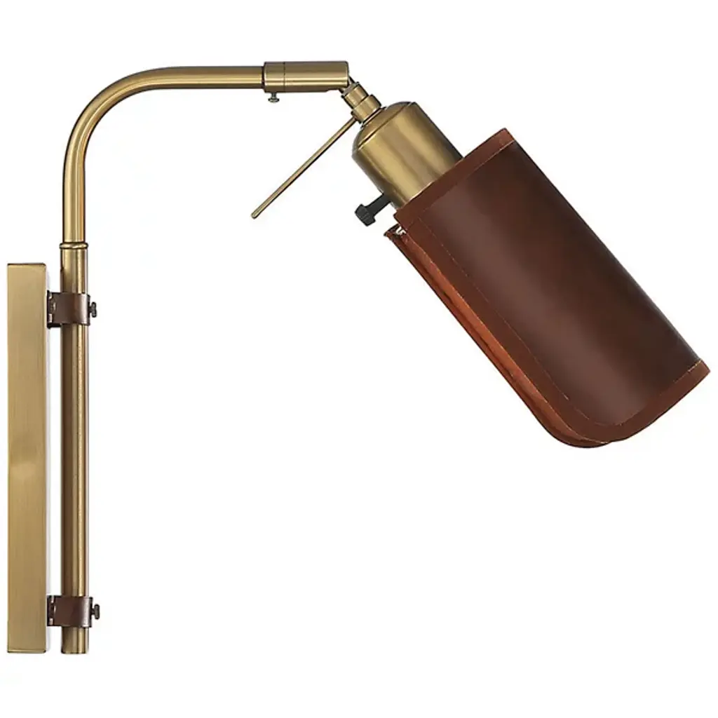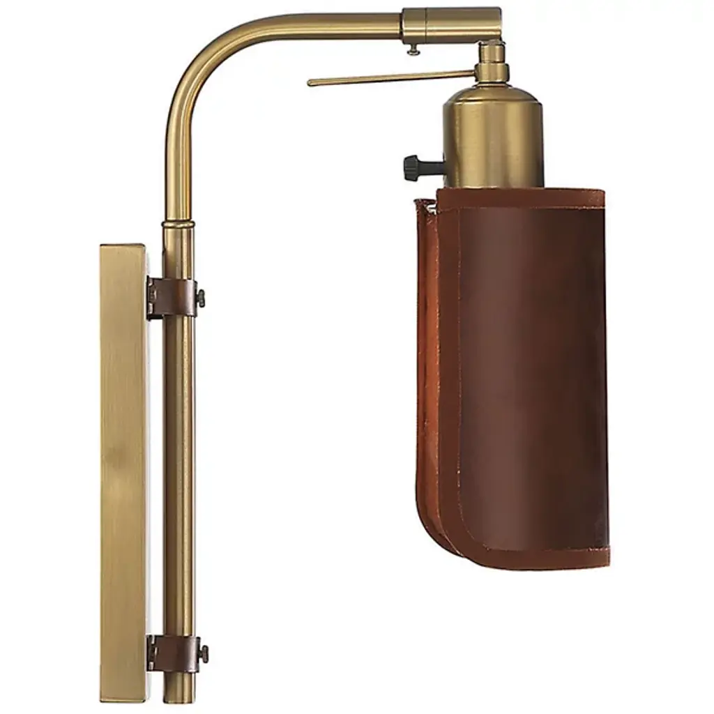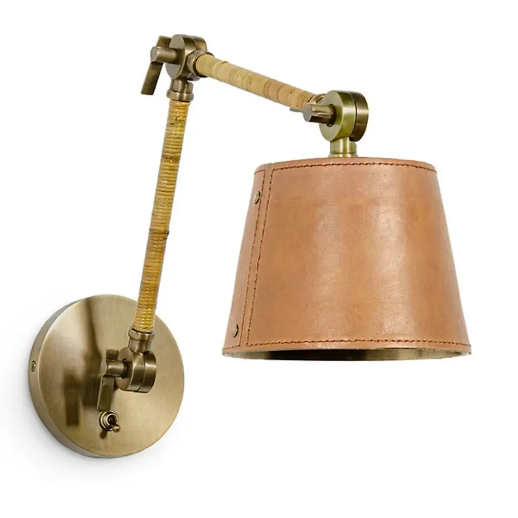 The Mira Wall Sconce by Alder & Ore is a transitional light fixture showcasing a high degree of craftsmanship and meticulous attention to detail. It has an artfully curved shade of exquisite leather for a sartorial touch. The arm and shade are adjustable, letting you precisely direct the LED, bringing illumination where you need it. The framework comprises durable metal and is secured to a backplate with elegant banding at the top and bottom of the backplate that keeps the fixture stable.