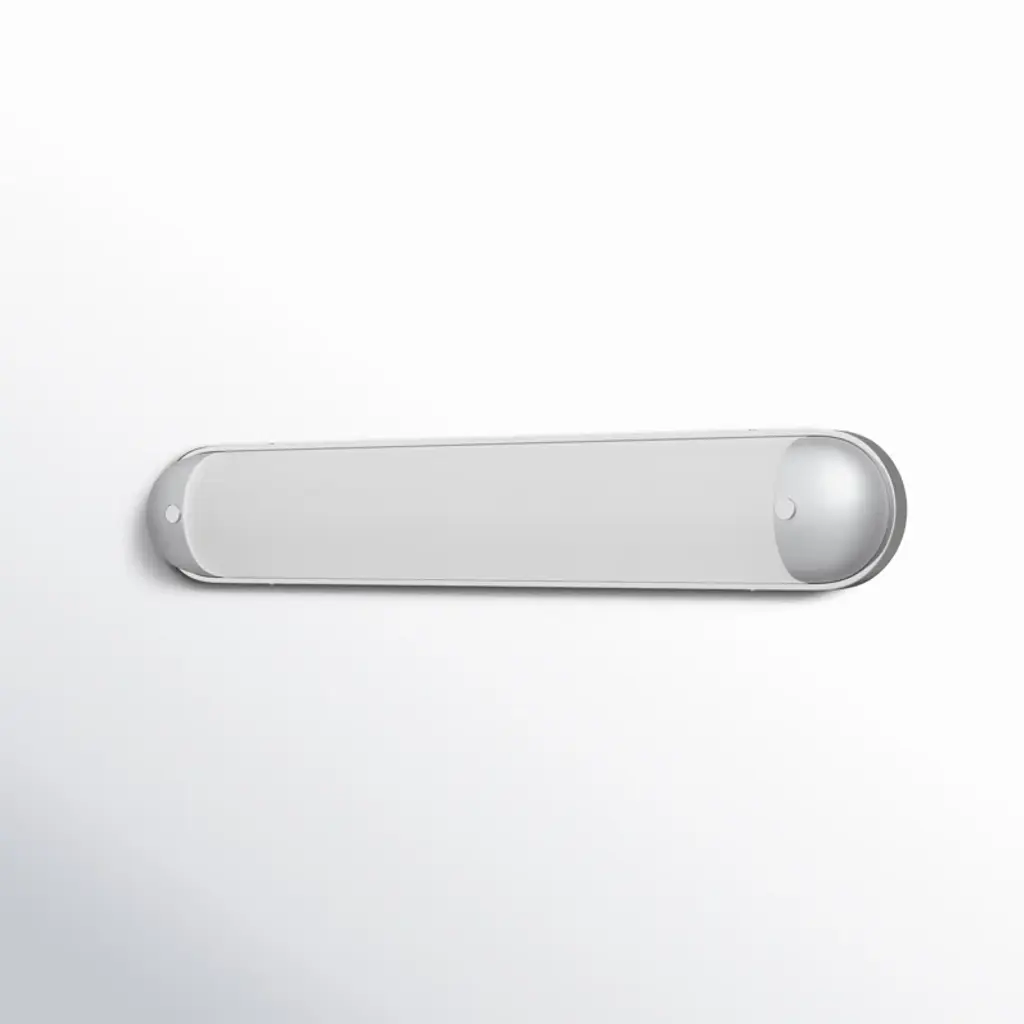 A convex curved glass is encapsulated at both ends to create an overall oval form. Available in a bold two-tone, these wall sconces add sophistication to hallways and above bath vanities. The integrated LED technology within the glass features an easily accessible, yet discreet color selectable switch for 5 color temperatures from a warm 2700k to neutrals 3000-3500-4000K and a daylight white 5000k.