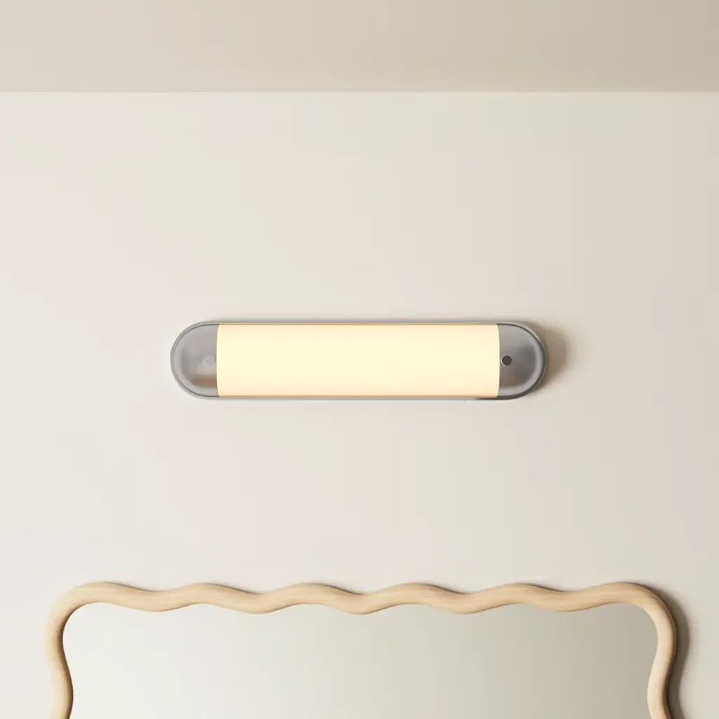 A convex curved glass is encapsulated at both ends to create an overall oval form. Available in a bold two-tone, these wall sconces add sophistication to hallways and above bath vanities. The integrated LED technology within the glass features an easily accessible, yet discreet color selectable switch for 5 color temperatures from a warm 2700k to neutrals 3000-3500-4000K and a daylight white 5000k.