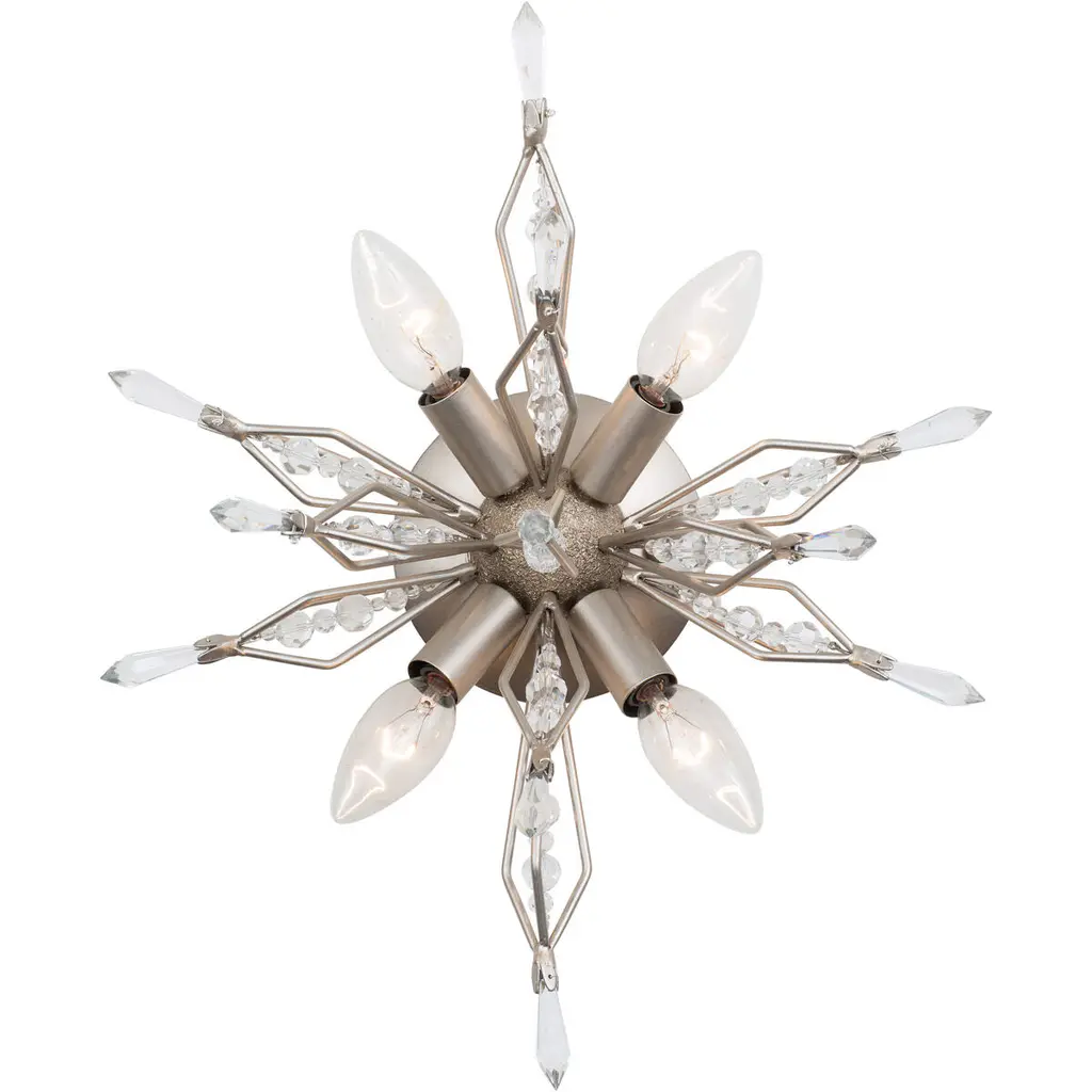 The delicate and romantic Misthaven is a family of unique fixtures made with a branch and leaf design, showing the twists, tangles and fluid lines of a wild forest, so fittingly Misthaven is anpther name for Enchanted Forest. Nature is a familiar motif we can connect with while also inspiring imagination and bringing the organic theme indoors in the form of this family sets a beautiful tone to any room. Densley placed crystals disperse light and cast captivating shadows onto the walls and ceiling, while the silver leaf and crystal clear finish could connote a winter scene of ice crystals on frozen branches. the 4 piece family is completed by a semi flush, wall sconce island light and chandelier.