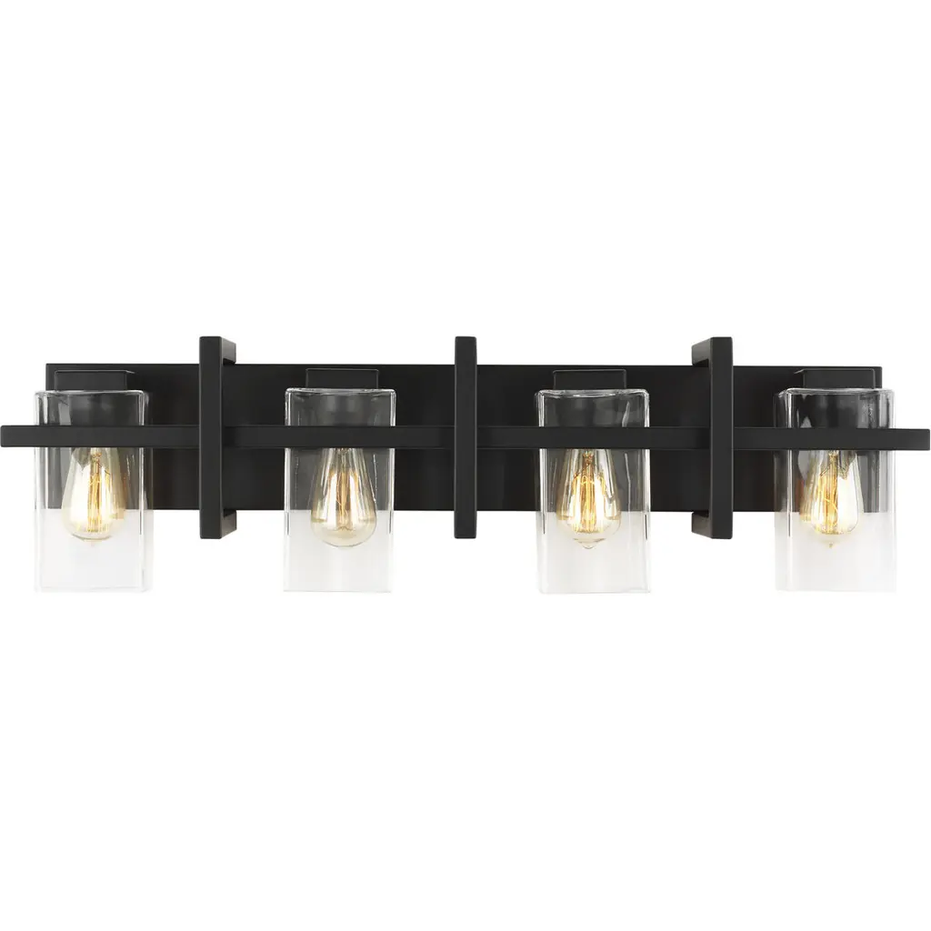 The Mitte three light vanity fixture in midnight black offers shadow-free lighting in your powder room, spa, or master bath room.