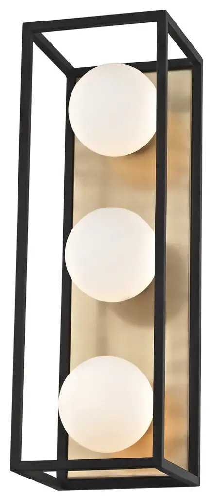 Three Light Bath Bracket from Aira collection in Aged Brass/Black finish. Number of Bulbs 3. Max Wattage 4.00 . No bulbs included. No UL Availability at this time.