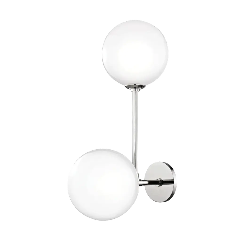 Two Light Wall Sconce from Ashleigh collection in Polished Nickel finish. Number of Bulbs 2. Max Wattage 4.00 . No bulbs included. No UL Availability at this time.