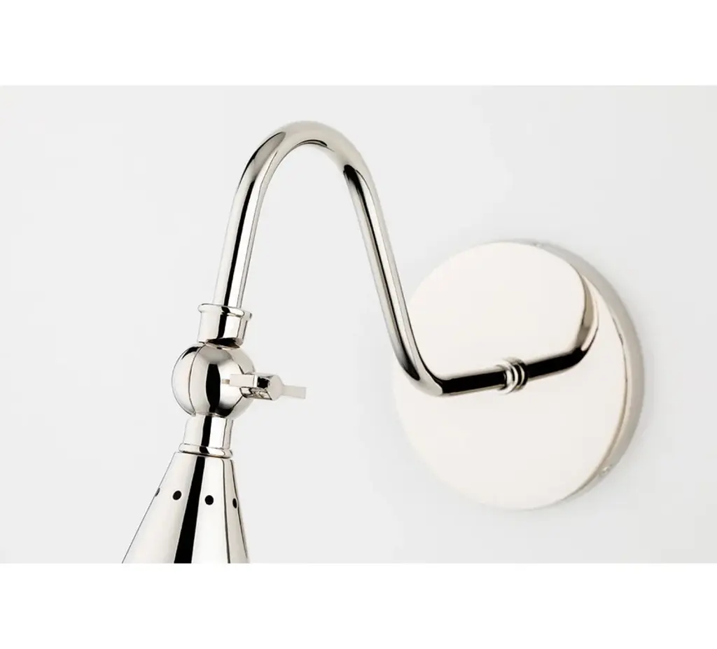 Features: Metal construction (1) 40 watt candelabra (E12) bulb required (not included) UL rated for damp locations One (1) year limited manufacturer warranty Dimensions: Height: 12" Width: 6-1/4" Extension: 14" Product Weight: 3.6lbs Backplate Height: 4-3/4" Backplate Width: 4-3/4" Electrical Specifications: Watts Per Bulb: 40 watts Number of Bulbs: 1 Bulb Base: Candelabra (E12) Voltage: 120v Bulb Included: No