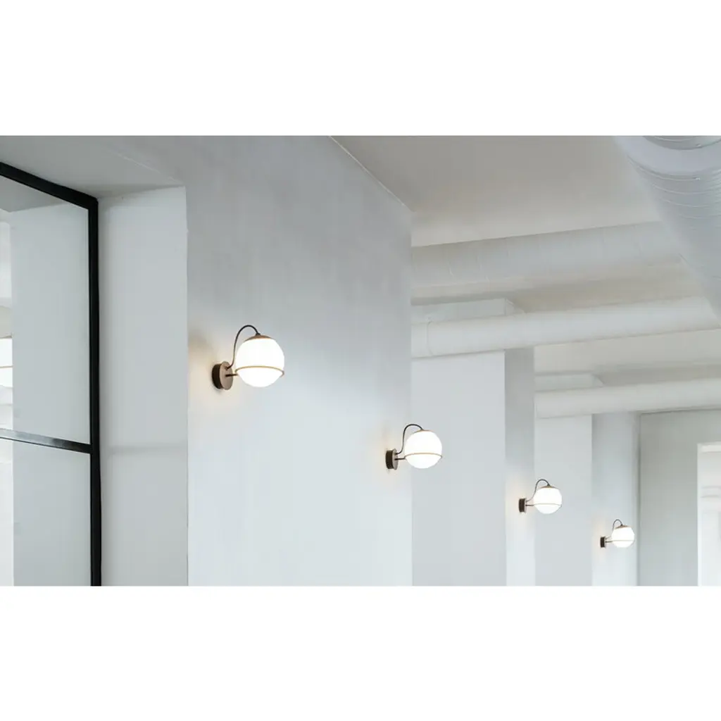 The Model 237/1 wall lamp by Astep comprises a round opal glass diffuser with a steel ring structure. You can place the glass spheres on the rings either way around and thus alter the lamp's look and intensity of light. The simplistic Model 237/1 will find its place in many kinds of spaces, be it a living room, hallway, kitchen or bedroom, either alone or as an attractive combination of several luminaires. The Model 237 wall lamp is part of the Le Sfere collection created by the legendary Italian lighting designer Gino Sarfatti in 1959. Sarfatti was inspired by natural light and the sky, and the lamps of the Le Sfere collection were influenced by the soft light and round shape of the Moon. The collection consists of a diverse range of luminaires having two things in common: white light diffused through opal glass and a modern, graphic touch of the metal rings. The Le Sfere lamps are made in Italy and are equally well suited for both private and public spaces.