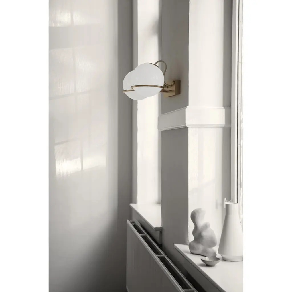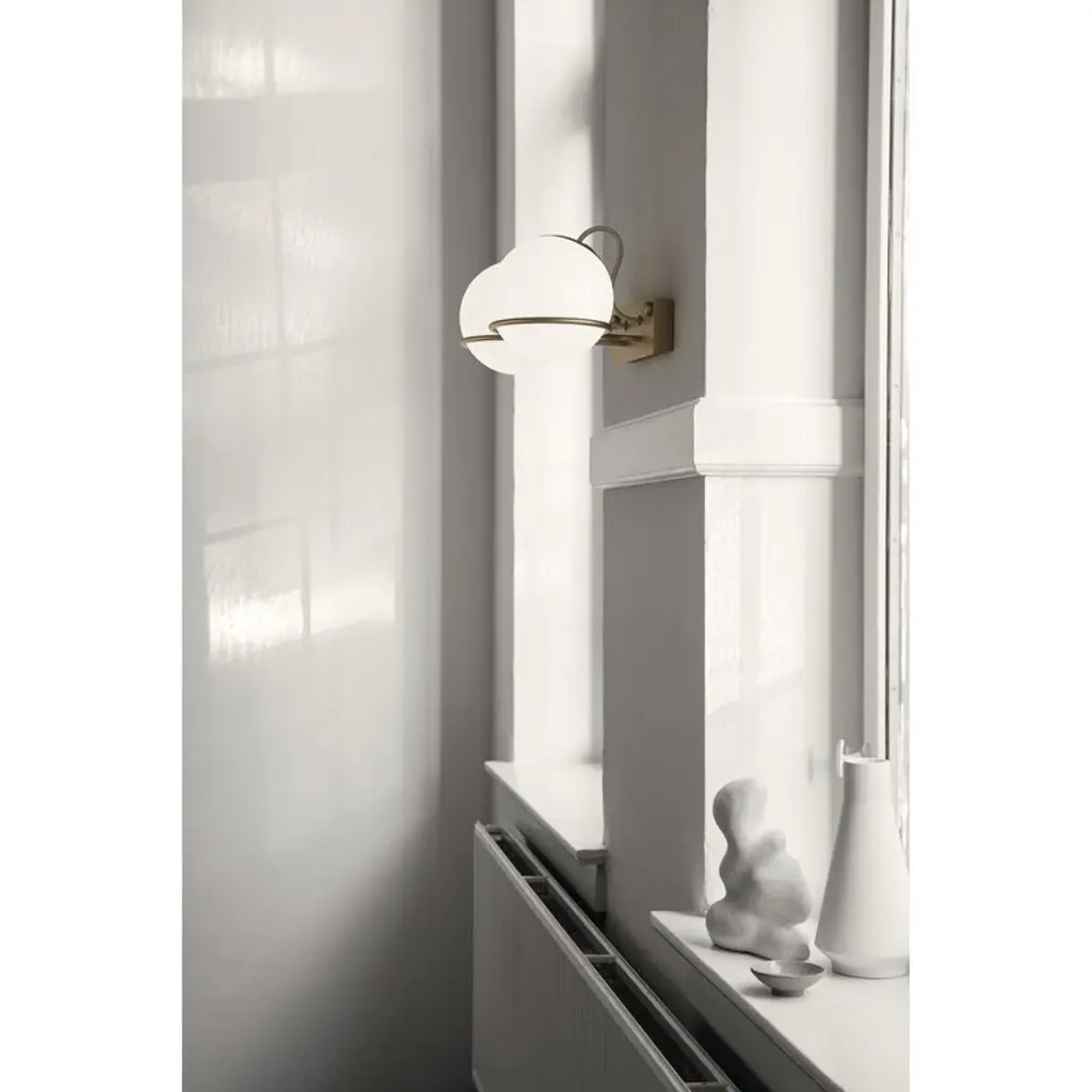 The Model 237/2 wall lamp by the lighting brand Astep is composed of two round opal glass diffusers with steel ring structures. You can place the glass spheres on the rings either way around and thus alter the lamp's look and intensity of light. The simplistic Model 237 will find its place in many kinds of spaces, be it a living room, hallway, kitchen or bedroom. The Model 237 wall lamp is part of the Le Sfere collection created by the legendary Italian lighting designer Gino Sarfatti in 1959. Sarfatti sought inspiration for his work from natural light and the sky, and the lamps of the Le Sfere collection were influenced by the soft light and round shape of the Moon. The collection consists of a diverse range of luminaires that all have two things in common: white light diffused through opal glass and a modern, graphic touch of the metal rings. The Le Sfere lamps are made in Italy and are equally well suited for private and public spaces.