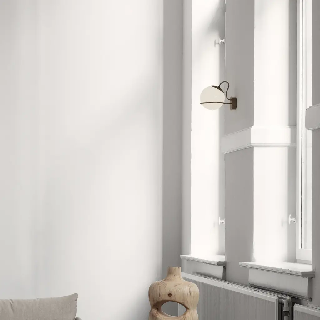 Always a popular choice, the Model 237/238-1 Wall Sconce from Astep is ready to bring understated elegance to your home. A delicate blown opaline glass sphere is cradled by a Black or Champagne steel ring, allowing the sphere to be placed upwards or downwards for customizable lighting. Choose from 5.5 inch or 8 inch spheres, providing both direct and indirect illumination in bedrooms, kitchens, hallways and more. Highlights