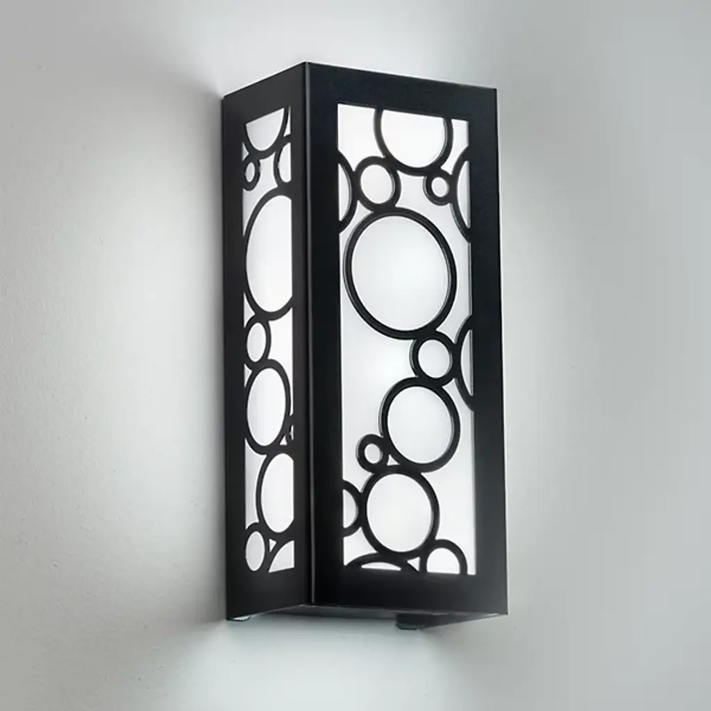The Ultralights Modelli 15330 Outdoor LED Wall Sconce is a rectangular lighting option that shows off a series of circles floating together like dynamic bubbles. The illumination is softly diffused through the Acrylic shade, which also provides great contrast against the dark finish. A simple lighting option with some added detail, this sconce provides ample lighting for any outdoor space needing a touch of modern aesthetic.